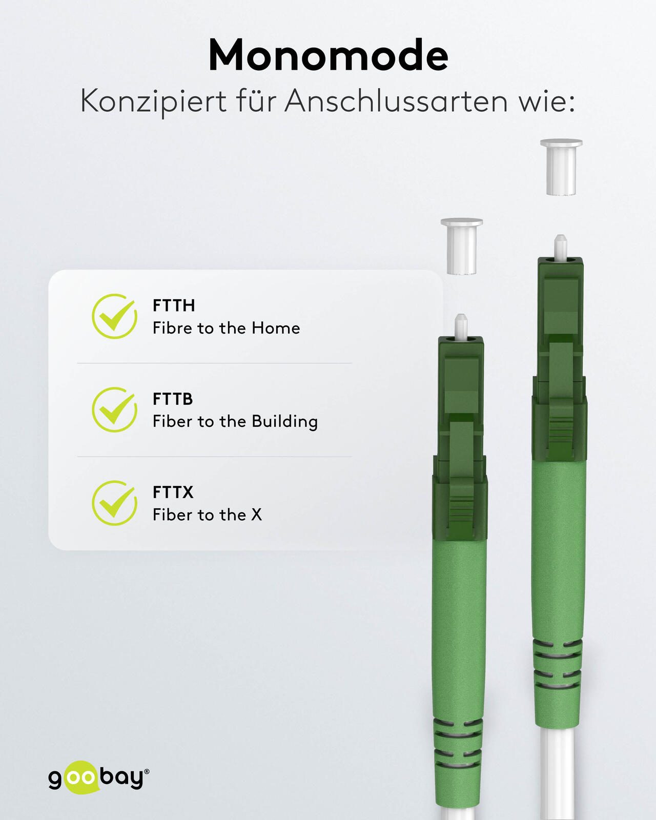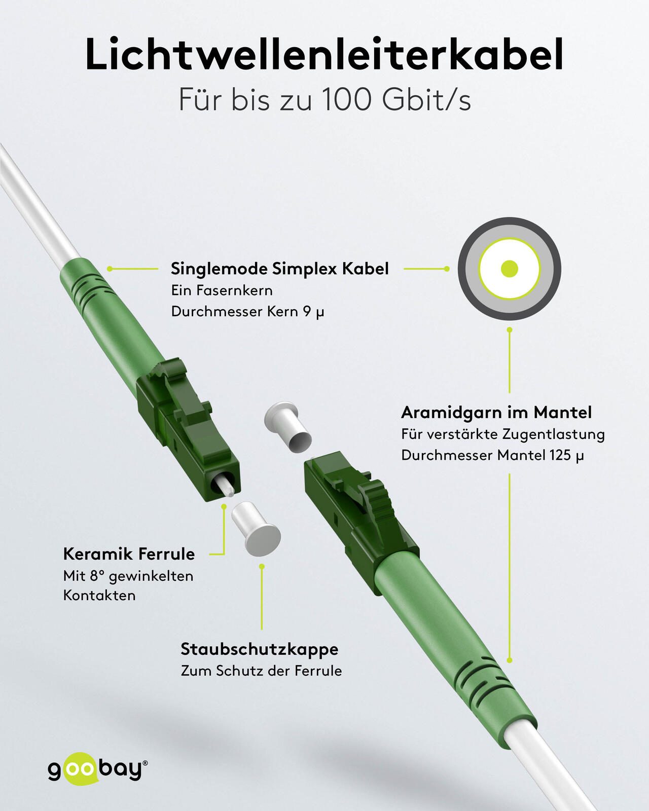 Das goobay LC-APC Glasfaserkabel 59585 ist somit die perfekte Wahl für alle, die Wert auf Qualität und Zuverlässigkeit legen. Egal, ob Sie ein Heimnetzwerk aufbauen oder professionelle Anwendungen realisieren möchten, dieses Kabel wird Ihren Anforderungen gerecht und sorgt für eine optimale Verbindung. Vertrauen Sie auf die Expertise von goobay und erleben Sie die Vorteile eines erstklassigen Glasfaserkabels.