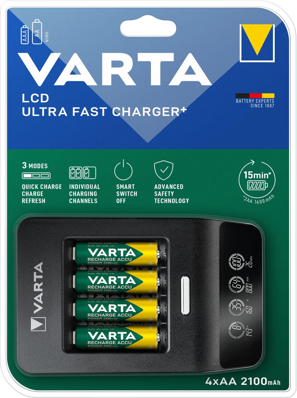 VARTA Akku-Schnellladegerät inkl. Akkus LCD ULTRA FAST CHARGER+