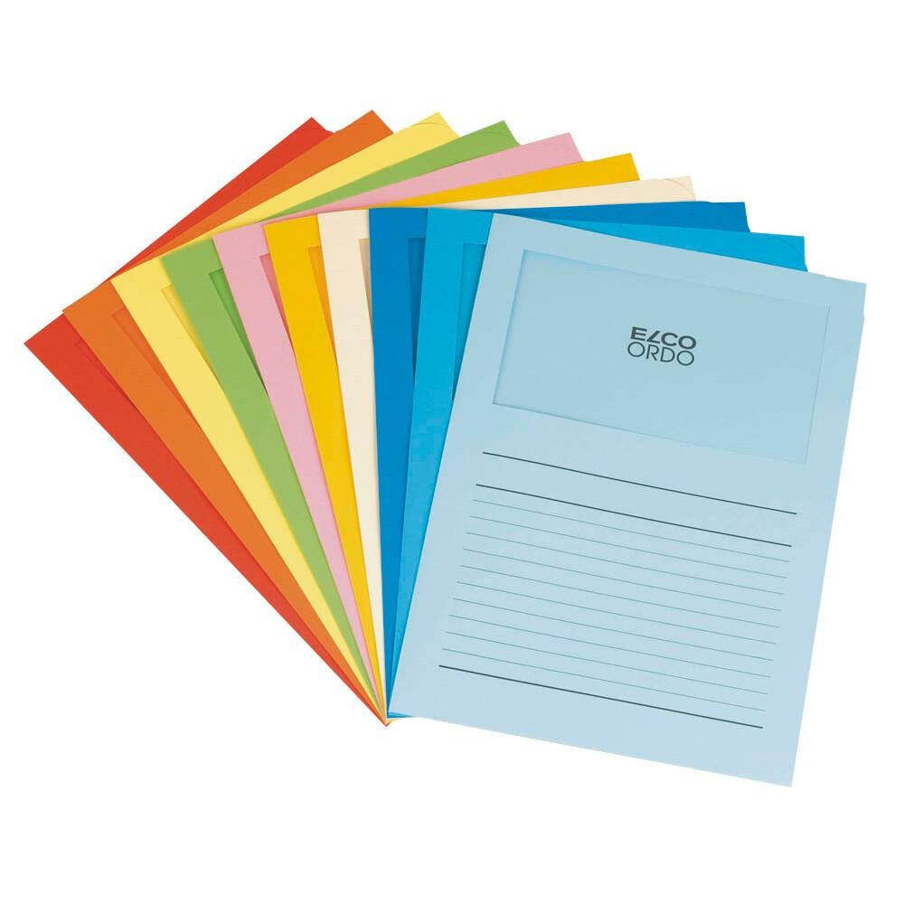 Organisationsmappe Elco Ordo classico. Ausführung: mit Sichtfenster in Größe 180 x 100 mm, mit Linienaufdruck. Ohne Verschluß. Werkstoff: Papier. Flächenmasse des Papiers: 120 g/qm. Verwendung für Papierformate: A4. Größe (B x H): 220 x 310 mm.
