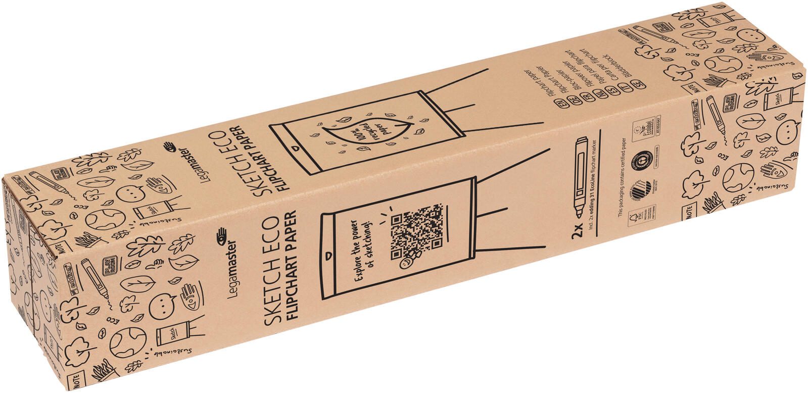 Die SKETCH ECO Serie von Legamaster steht zudem für Nachhaltigkeit und Umweltbewusstsein, ohne dass Sie dabei auf Qualität verzichten müssen. Das Papier ist Teil der Multifunktions-Papier-Familie und speziell für den Einsatz an Flipcharts konzipiert. Im Lieferumfang sind außerdem zwei edding 31 EcoLine Flipchartmarker enthalten, die optimal auf das Papier abgestimmt sind und ein klares, gut lesbares Schriftbild ermöglichen.