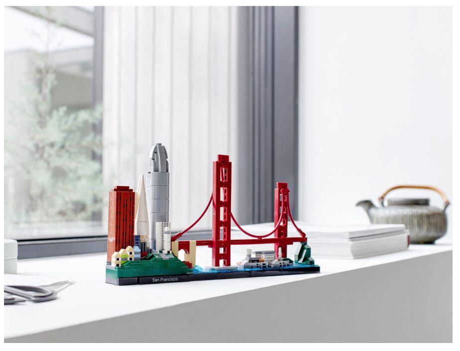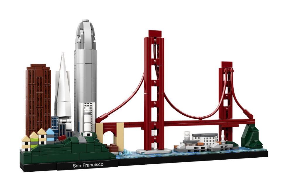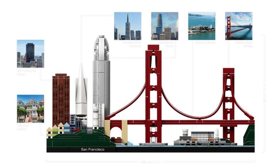 Das Set umfasst legendäre Sehenswürdigkeiten und berühmte Wahrzeichen San Franciscos, unter anderem die berühmten „Painted Ladies“-Häuser, 555 California Street, die Transamerica Pyramid, den Salesforce Tower, den Coit Tower, Fort Point, die Golden Gate Bridge und Alcatraz Island.