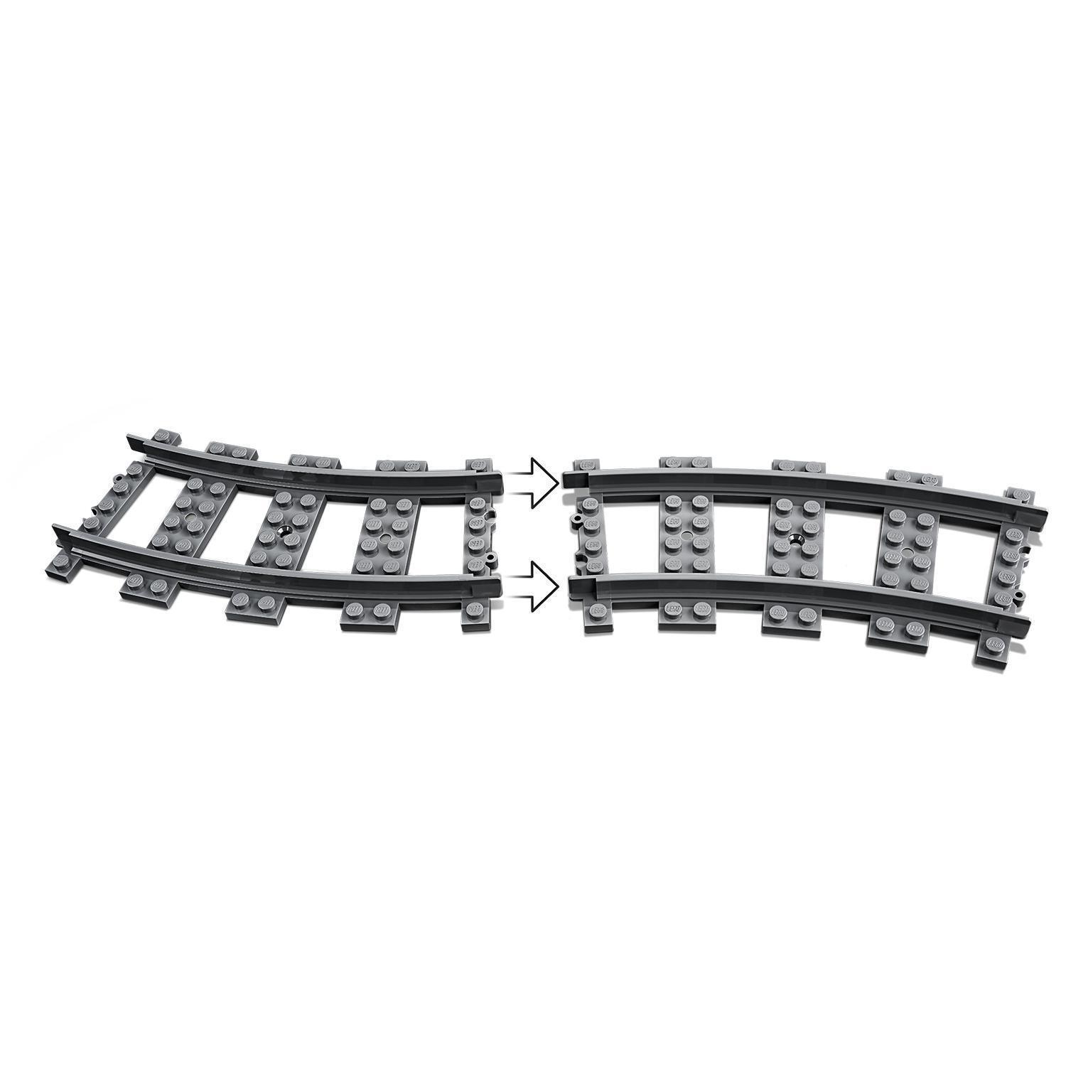 Verbinde die Schienensegmente mit den Schienensträngen aus deinen vorhandenen Sets wie dem LEGO® City Güterzug (60198), um noch mehr Bau- und Spielspaß zu erleben.