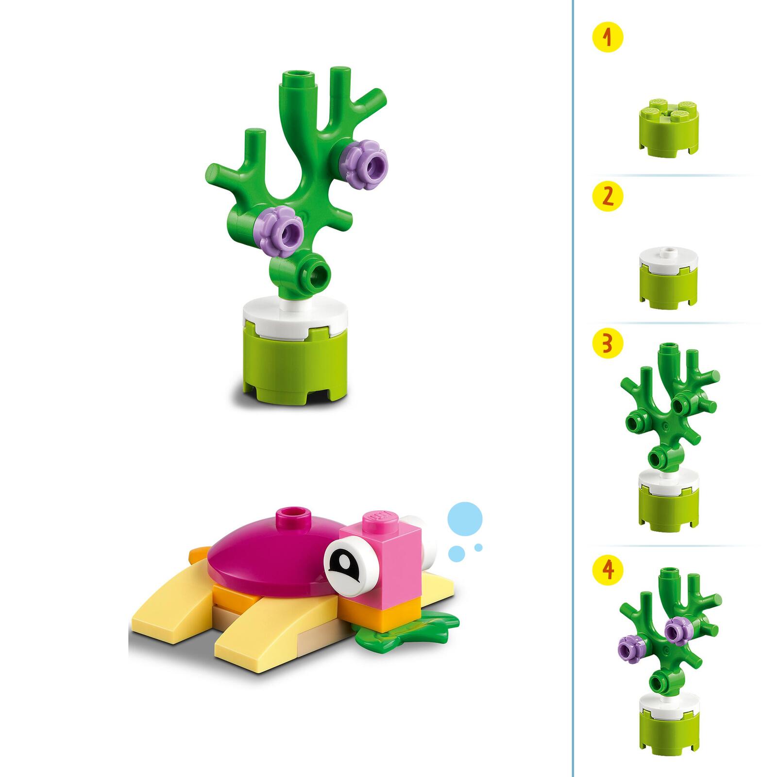 Inhalt des Sets: Alles, was Kinder brauchen, um ein Wikingerschiff, ein gelbes U-Boot, eine Unterwasserdrohne, ein Seepferdchen, einen Wal und eine Schildkröte zu bauen, sowie 2 Beutel mit LEGO® Teilen für kreative eigene Modelle