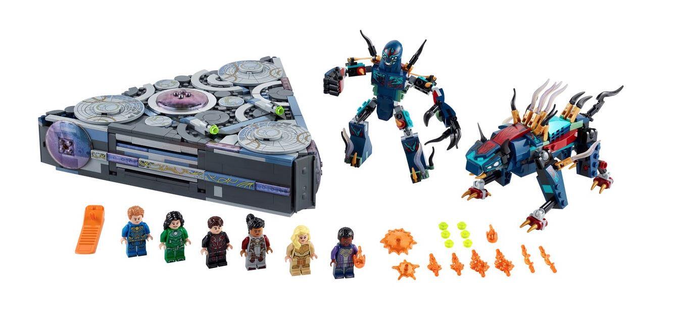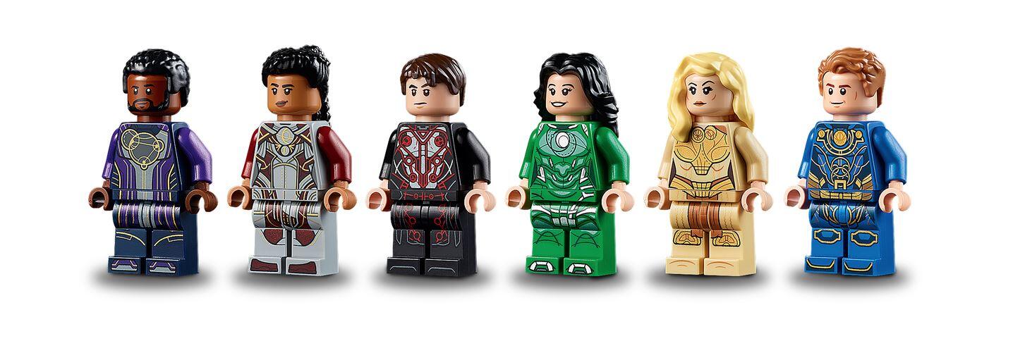 Beinhaltet 6 Minifiguren – Makkari, Ikaris, Thena und Sersi sowie die beiden exklusiven Charaktere Druig und Phastos. 2 Deviant-Actionfiguren sowie Kro, der Deviant-Anführer, ein Raumschiff, Ausrüstung und Zubehör sind ebenfalls enthalten.