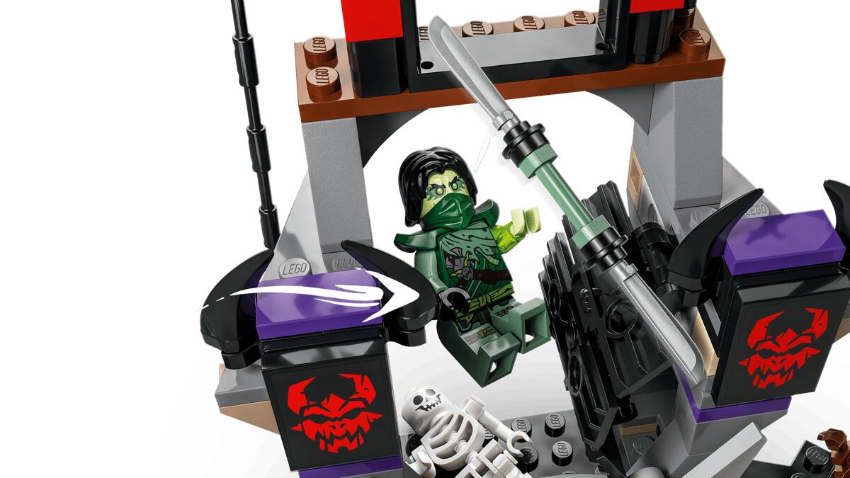 In dem Versteck der Drachenfiguren findet sich ein Käfig für das Einsperren der Ninja, eine Grube mit einem Skelett, in die sich die Helden hineinstürzen können, ein Kletterseil für die Flucht und ein Spinner, in den sich zwei 2 Figuren hineinsetzen lassen, um Gegner umzustoßen.