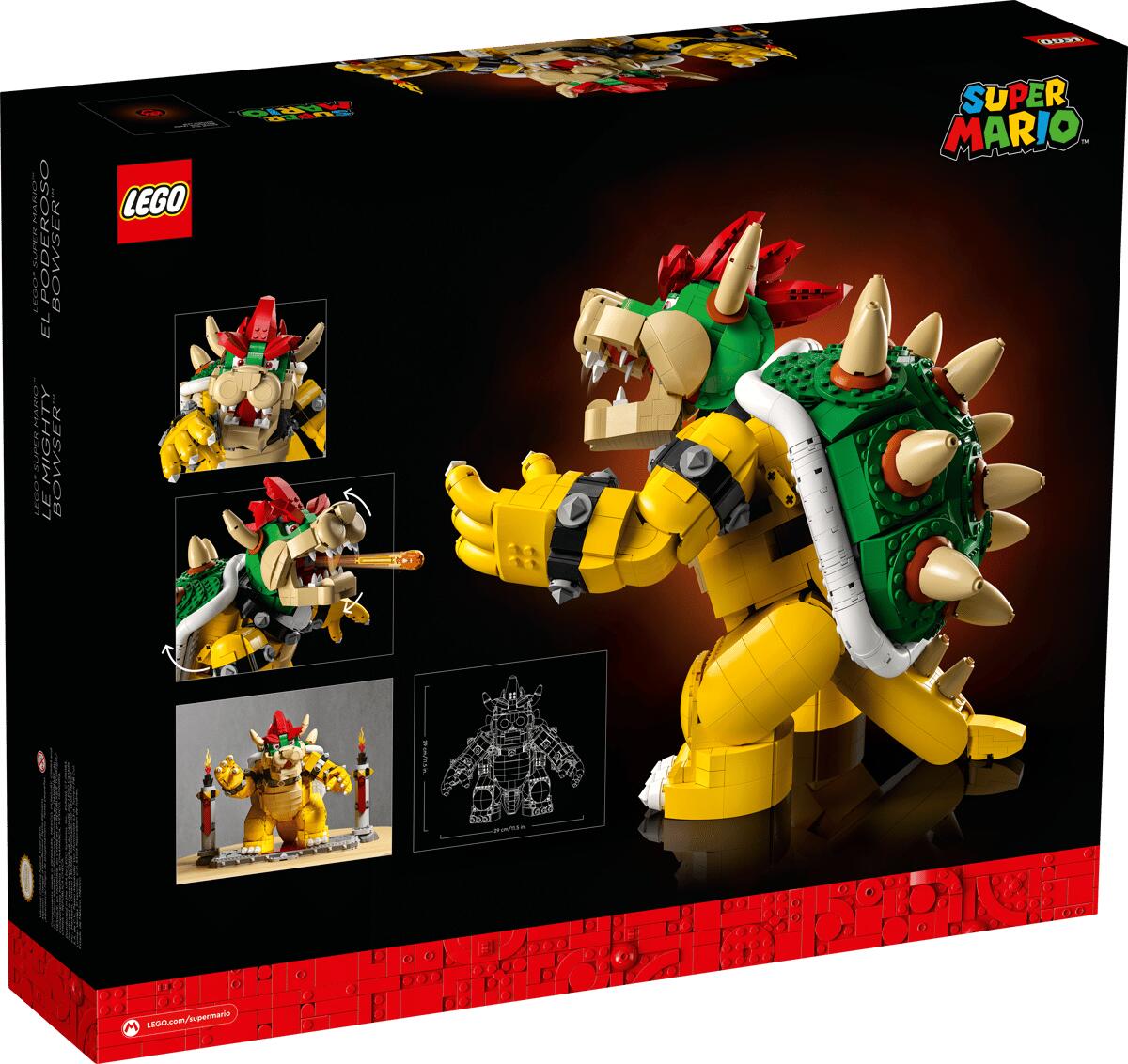 Der mächtige Bowser zum Ausstellen: Dieses Modell des LEGO® Super Mario™ Charakters ist mit Ständer 32 cm hoch, 41 cm breit und 28 cm tief