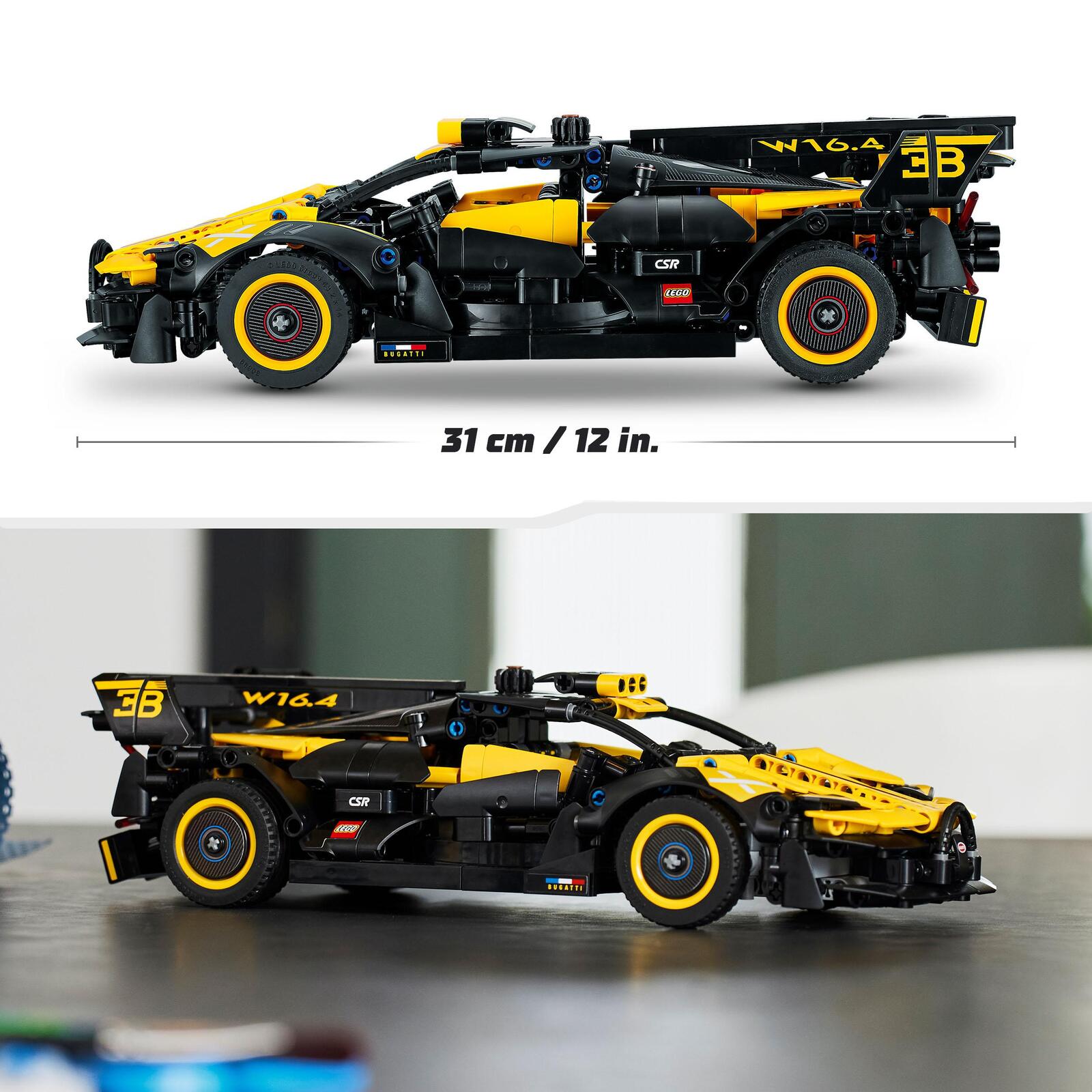 Der LEGO® Technic Bugatti-Bolide (42151) inspiriert Kinder ab 9 Jahren dazu, einen eigenen Rennwagen zu bauen. Bei diesem anspruchsvollen Bauprojekt kann dein Kind originalgetreue Details wie den funktionierenden W16-Motor, die bewegliche Lenkung und die aufklappbaren Scherentüren nachbilden. Mit der schwarz-gelben Lackierung und den authentischen Grafiken zum Aufkleben stiehlt das Auto allen die Show. Nachdem dein Kind das Modell gebaut und gründlich erkundet hat, kann es das spektakuläre Sammlerstück ausstellen.