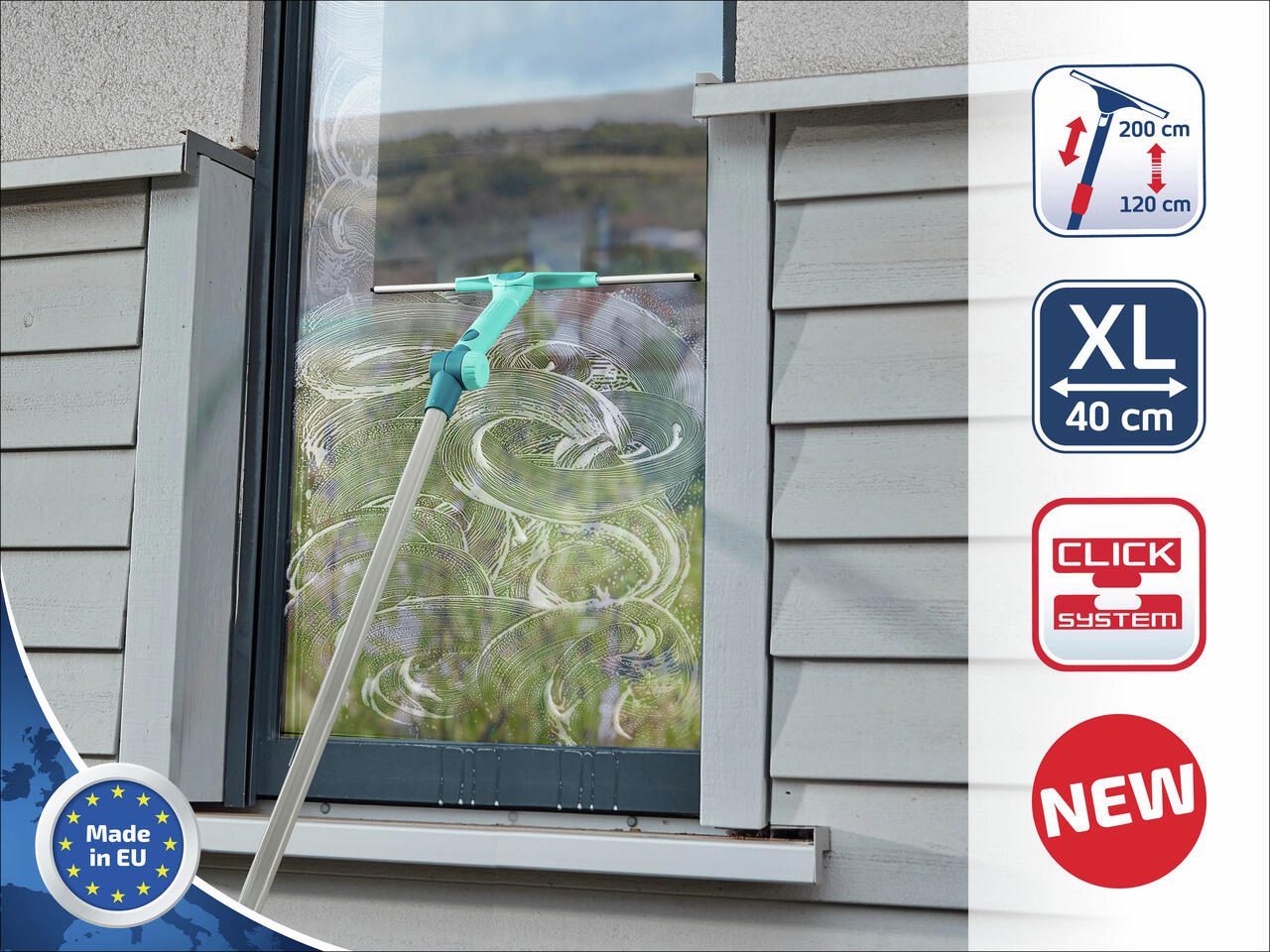 Der LEIFHEIT 2in1 XL Pro Reach Fensterabzieher überzeugt durch seine durchdachte Konstruktion und hochwertige Verarbeitung. Mit einer Breite von 40 cm ermöglicht er eine effiziente und zeitsparende Reinigung großer Glasflächen. Das bewegliche Gelenk sorgt für eine flexible Handhabung, sodass auch schwer erreichbare Stellen mühelos gereinigt werden können. Die Teleskopstange ist in der Länge von 120 cm bis 200 cm verstellbar und bietet somit zusätzlichen Komfort, insbesondere bei hohen Fenstern oder schwer zugänglichen Bereichen.