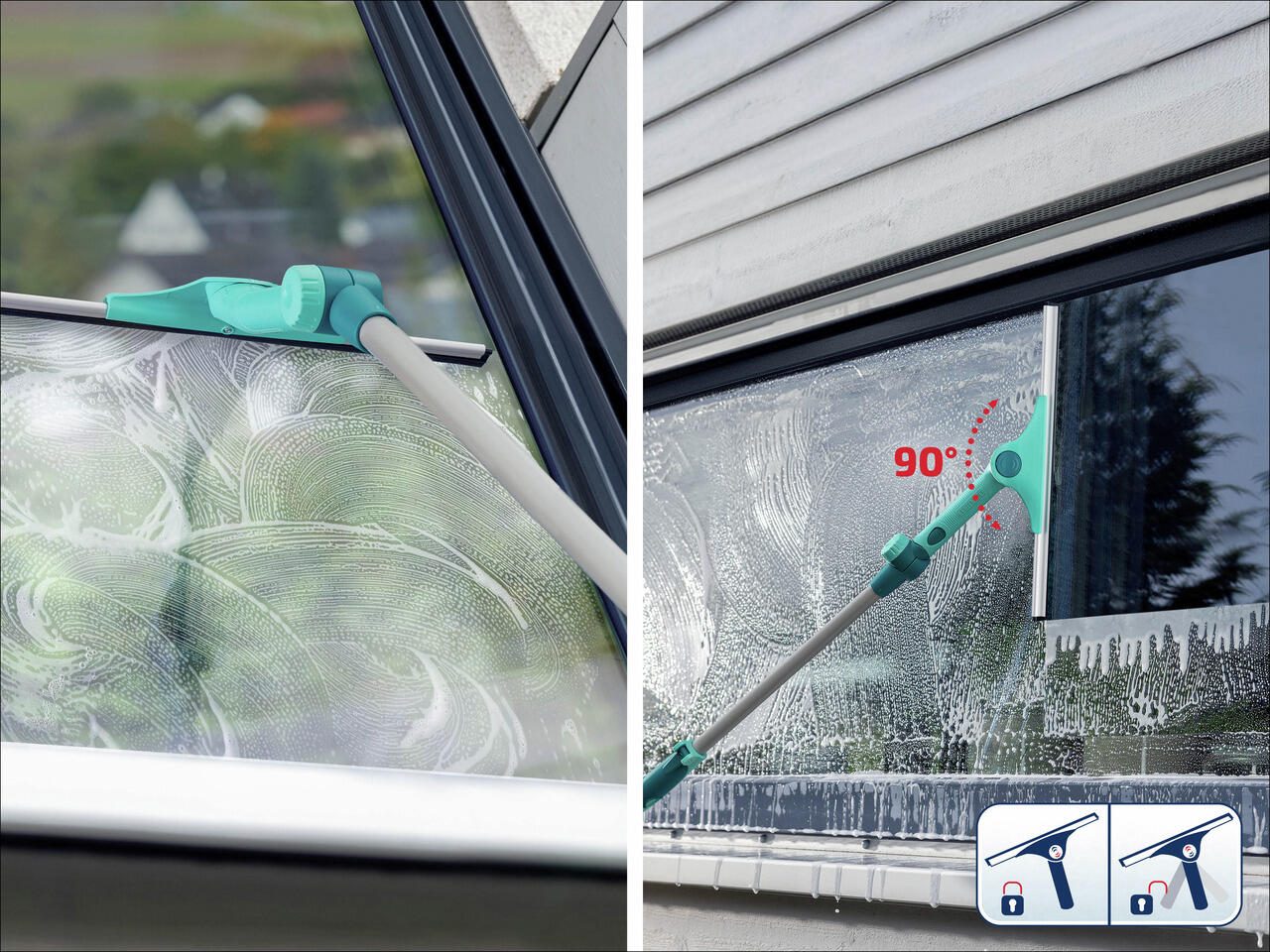 LEIFHEIT 2in1 XL Pro Reach Fensterabzieher 40,0 cm mit Gelenk, türkis