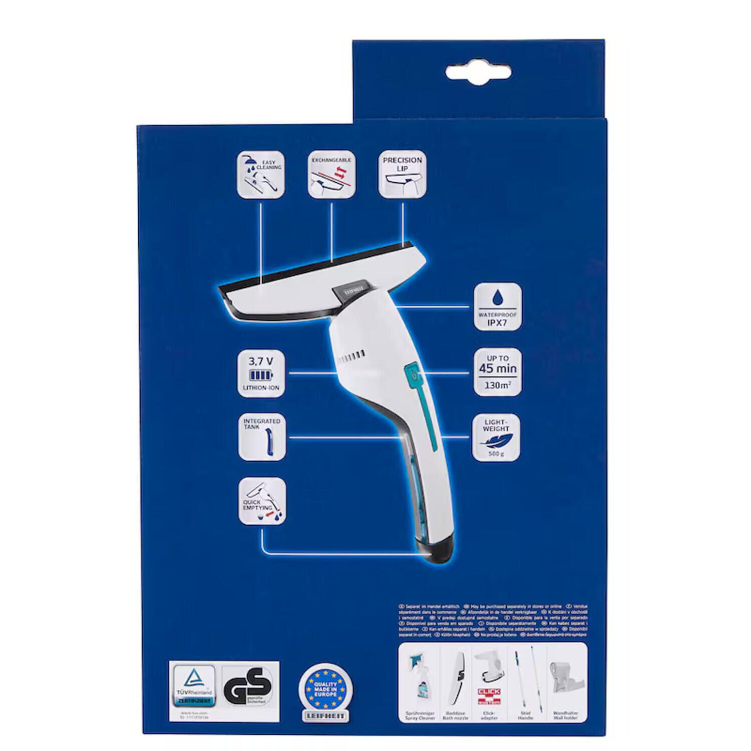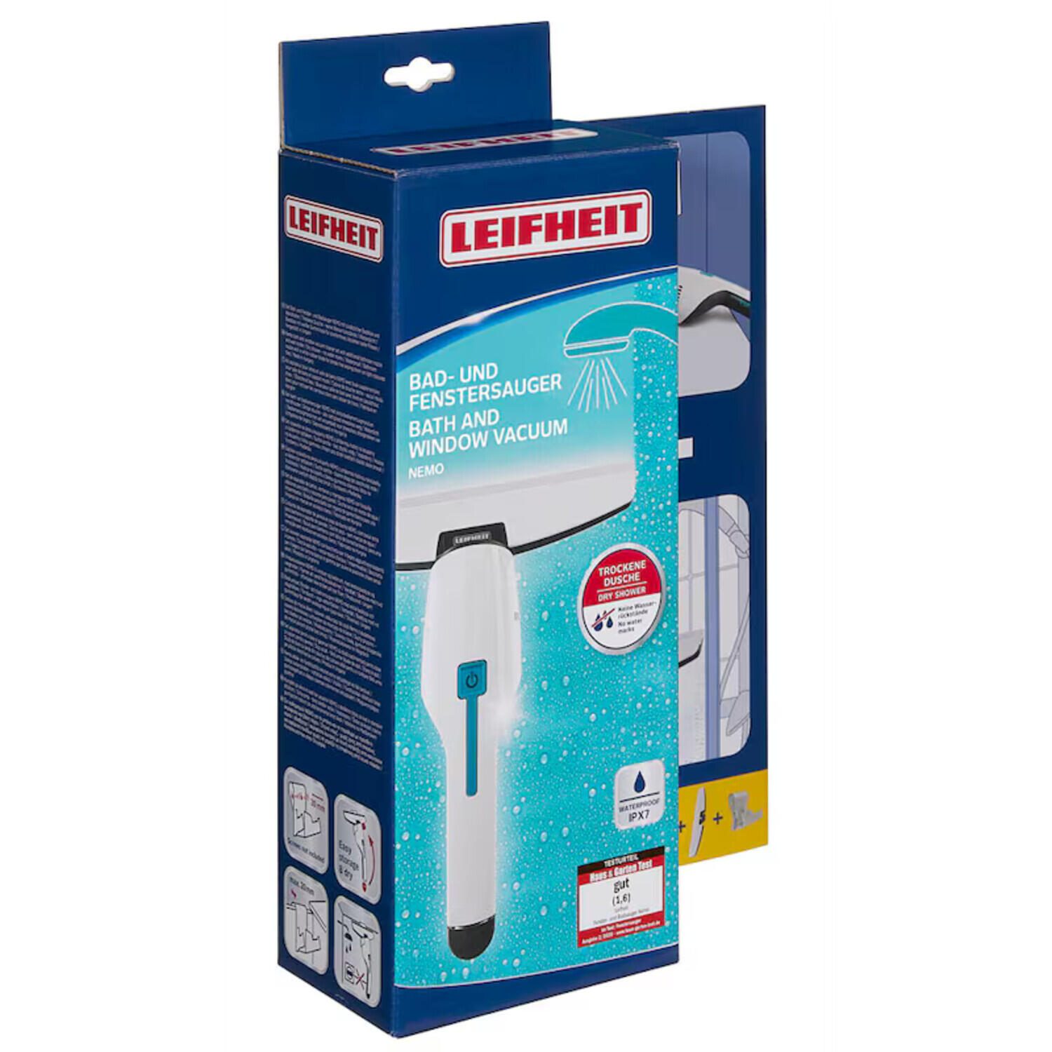 Der Fenstersauger ist in einem schlichten weißen Farbton gehalten und gehört zur Produktserie Nemo von Leifheit. Seine kabellose Bauweise und die einfache Handhabung machen ihn zu einem praktischen Helfer im Haushalt für die Reinigung von Fenstern und glatten Oberflächen im Nassbereich.