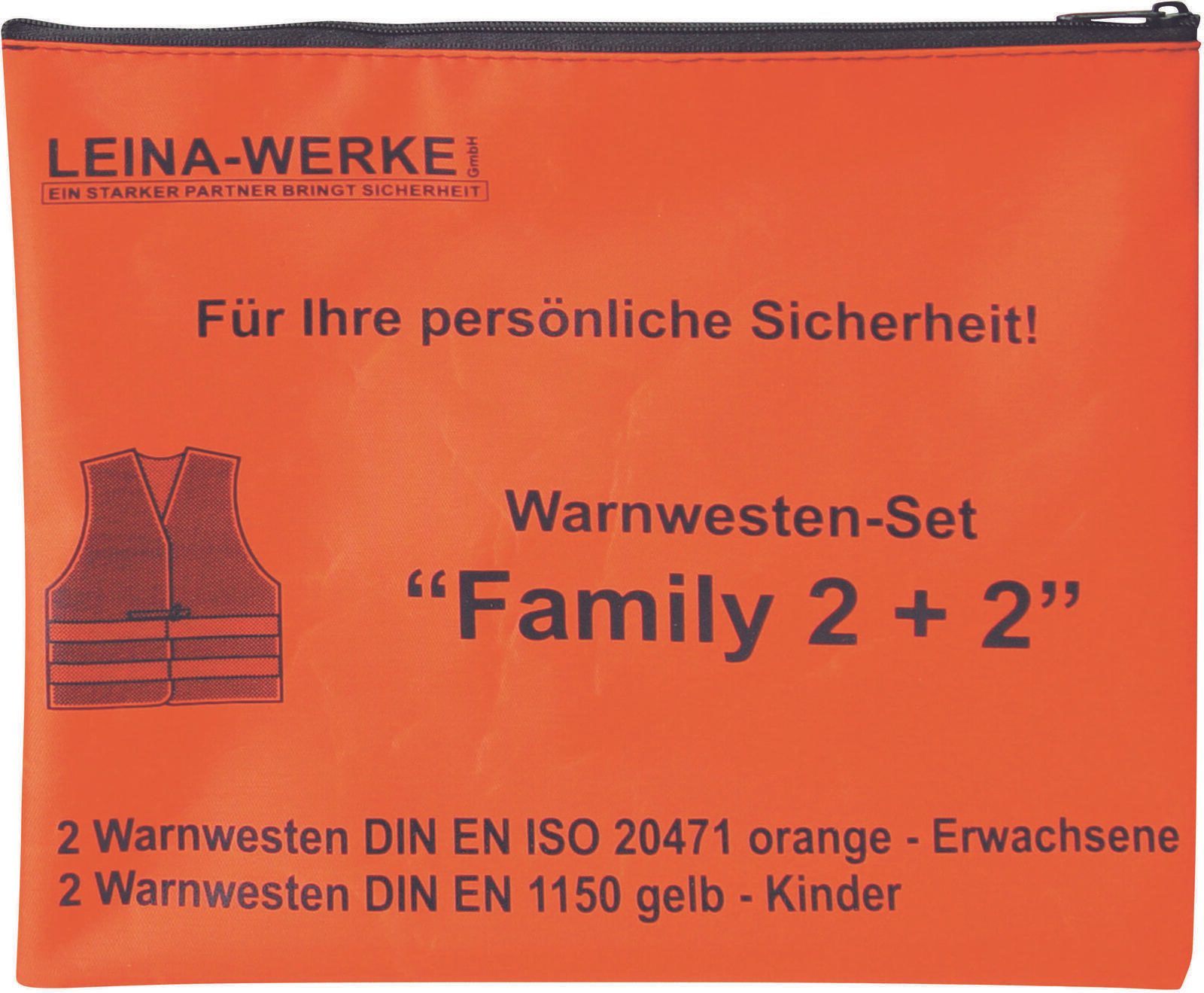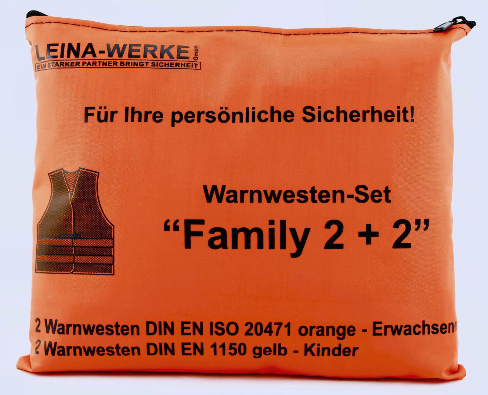 - Besonderheiten: 2 Warnwesten für Erwachsene und 2 Warnwesten für Kinder, mit Tasche