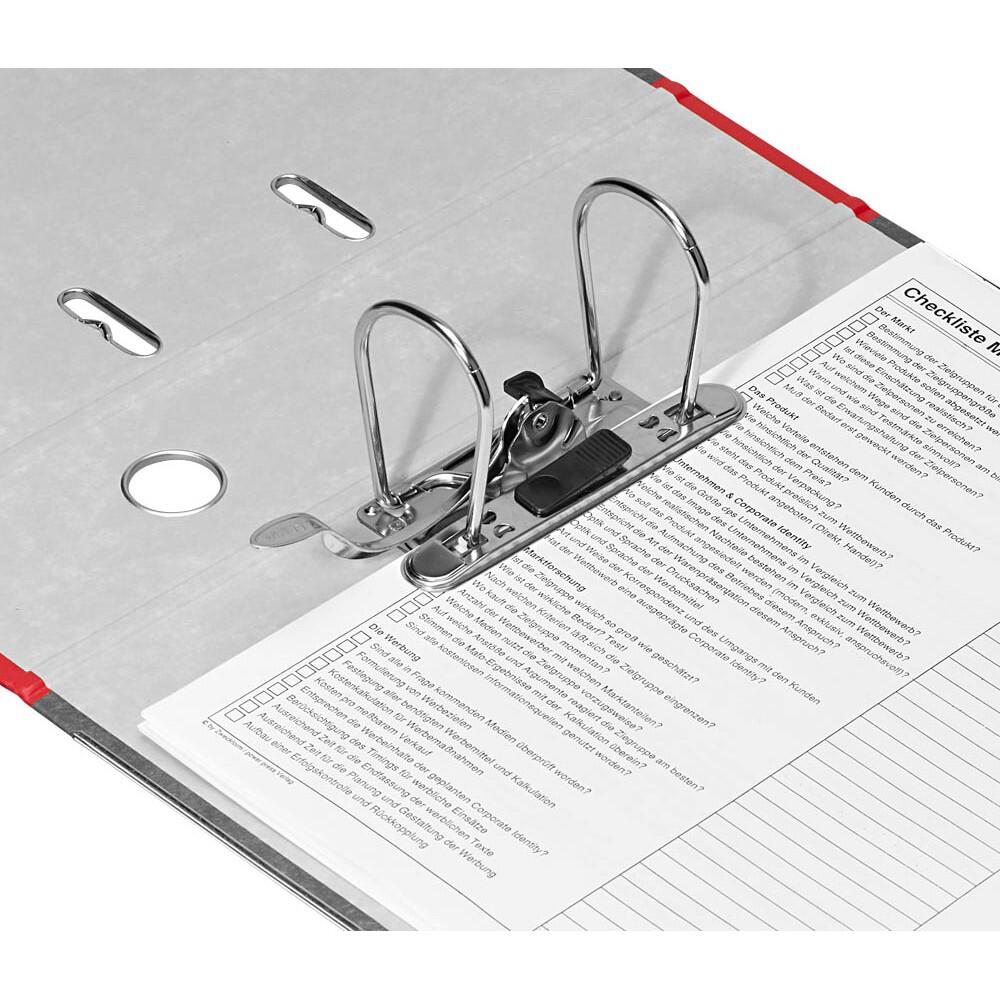 Geschlitzter Deckel, verstärkte Kanten, 180°-Leitz-Ordner-Mechanismus