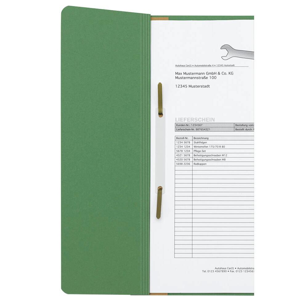 Farbiger Schlitzhefter mit Mechanik zur Ablage von gelochten Unterlagen. Spezielle Schlitze ermöglichen ein schnelles Einhaken im Ordner, ohne dass die Mechanik geöffnet werden muss.