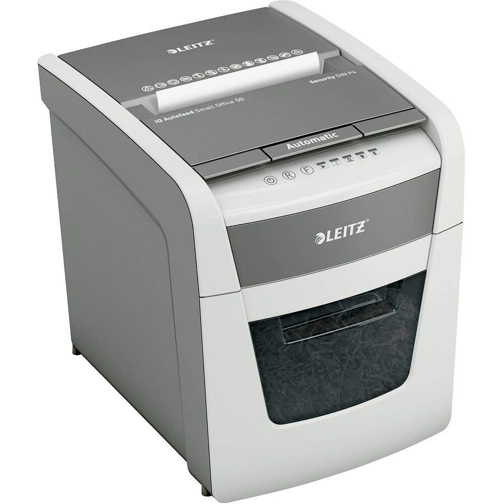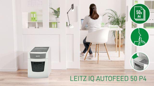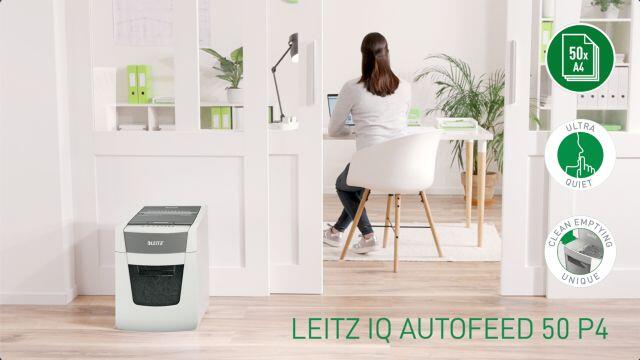 LEITZ IQ Autofeed Small Office 50 Aktenvernichter P-4 50 Blatt weiß