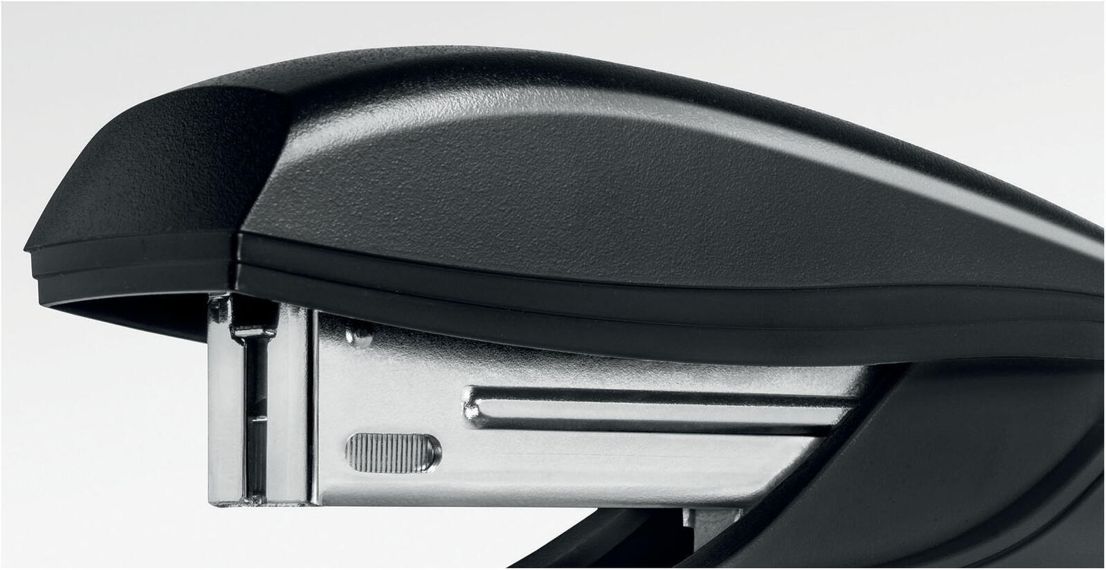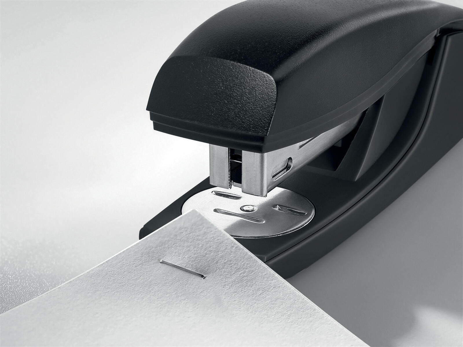 Das Oberlademechanik-Design macht das Nachfüllen neuer Heftklammern zu einem Kinderspiel, sodass du kostbare Zeit sparst und dich auf das Wesentliche konzentrieren kannst. Der stylishe schwarze Farbton verleiht deinem Schreibtisch zudem eine elegante Note, die Blicke auf sich zieht.