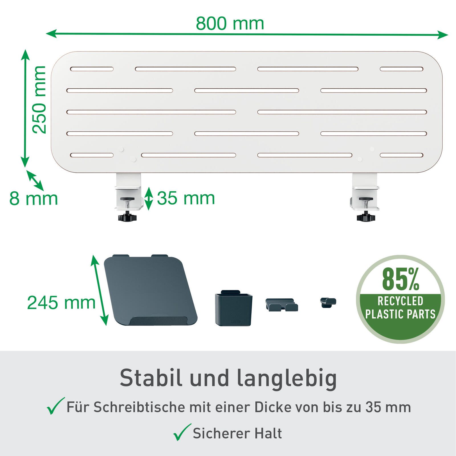 Der LEITZ Pegboard Anbau-Schreibtisch-Organizer in Weiß ist eine praktische Ergänzung für den Arbeitsplatz. Gefertigt aus robustem Holz, bietet er eine stabile und langlebige Lösung zur übersichtlichen Organisation von Arbeitsutensilien. Mit einer Höhe von 25,0 cm und einer Breite von 80,0 cm passt er gut an den Schreibtisch und schafft zusätzlichen Stauraum.