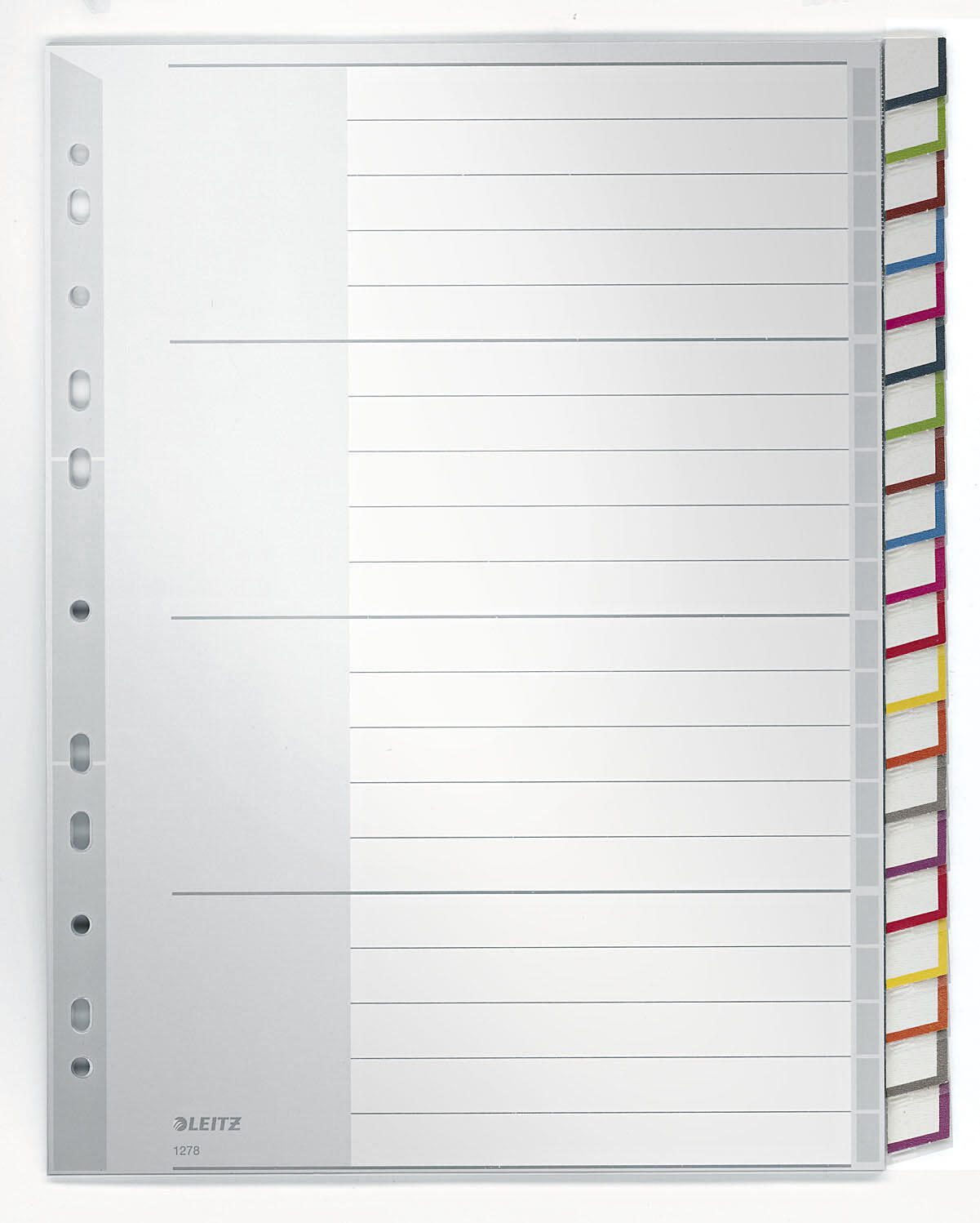 Hergestellt aus strapazierfähigem Polypropylen (PP) in grau-weiß, ist dieses Register nicht nur funktional, sondern auch langlebig und ansprechend im Design. Die geprägten, blanko Taben ermöglichen es dir, die einzelnen Abschnitte individuell zu beschriften und so eine klare Struktur zu schaffen.