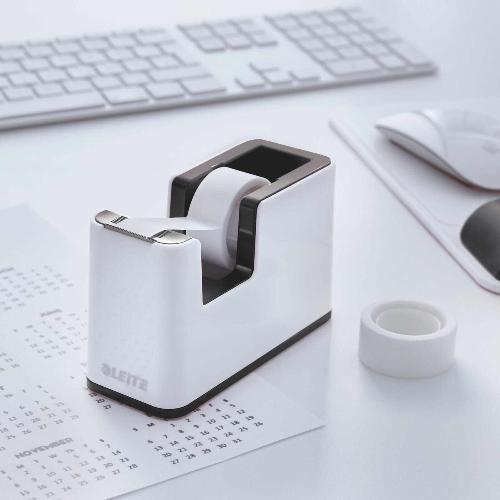 Mit dem LEITZ Tischabroller WOW, ws/sw, bringst du nicht nur Ordnung auf deinen Schreibtisch, sondern setzt auch ein stilvolles Statement. Entdecke die praktische und elegante Lösung zum schnellen und einfachen Abrollen von Klebefilm.