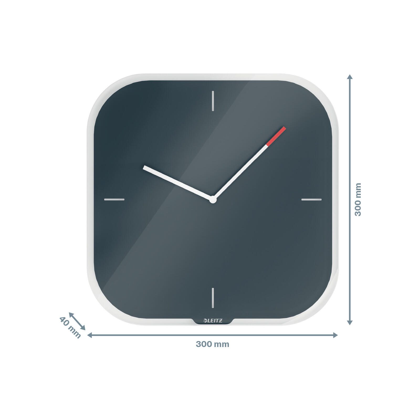 Die Leitz Wanduhr Cosy in Grau besticht durch ihr eckiges Design und eignet sich perfekt zur Wandmontage. Mit einem Sekundenzeiger ausgestattet, ermöglicht sie eine präzise Zeitangabe. Ein besonderes Highlight dieser Uhr ist die beschreibbare Oberfläche, auf der Notizen oder Zahlen leicht festgehalten werden können. Diese Wanduhr aus der Cosy-Serie von LEITZ ist in einem dezenten Grauton gehalten und fügt sich somit harmonisch in jeden Raum ein. Das analoge Zifferblattdesign mit Balken verleiht ihr einen modernen Look. Die Uhr verfügt über keine Datumsanzeige und wird mit einer handelsüblichen Mignon AA-Batterie betrieben. Mit der Leitz Wanduhr Cosy grau holst du dir nicht nur ein praktisches Zeitmessgerät ins Haus, sondern auch ein stilvolles Dekorationsstück, das zugleich als praktische Notizfläche dient. Lass dich von der Kombination aus Funktionalität und Ästhetik überzeugen und bereichere dein Zuhause mit dieser eleganten Wanduhr.Technische Daten