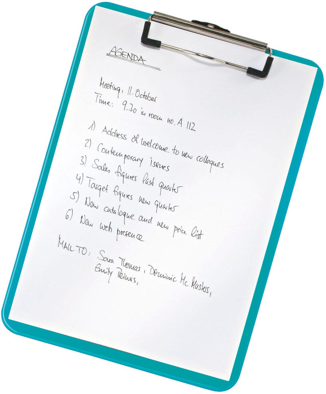 Egal ob für den Einsatz im Büro, in der Schule oder unterwegs, dieses Klemmbrett bietet dir die Möglichkeit, deine Unterlagen sicher zu halten und gleichzeitig mobil zu bleiben. Mit seinem auffälligen eisblauen Farbton ist es zudem ein echter Blickfang und verleiht deinem Arbeitsplatz eine persönliche Note.