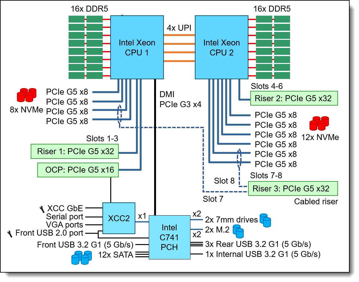 - 1x 1100W Titanium (max. 2), XClarity Controller 2 (XCC2) Platinum