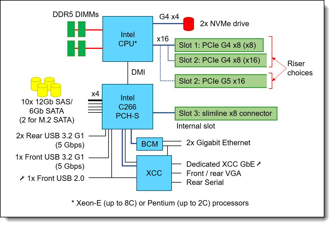 - 1x 800W Titanium (max. 2), XClarity Controller 2 (XCC2) Platinum