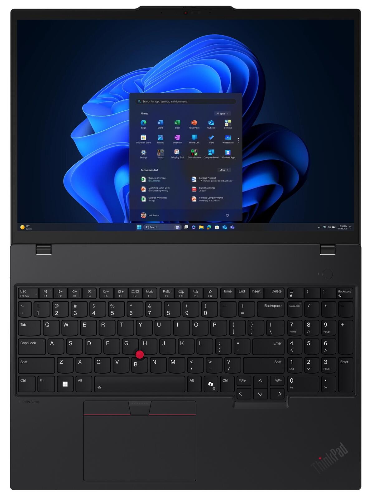 Die ThinkPad Tastatur ist nach wie vor mit unserem legendären TrackPoint für die Navigation ausgestattet, und nach zweimaligem Tippen öffnet sie auch schnelle Menüeinstellungen. Taktile Markierungen verbessern die Zugänglichkeit an der Eingabe-, Fn-, Einfügetaste, am Netzanschlussen und mehr. Und es gibt einen Ziffernblock, falls Sie mit Zahlen arbeiten müssen.