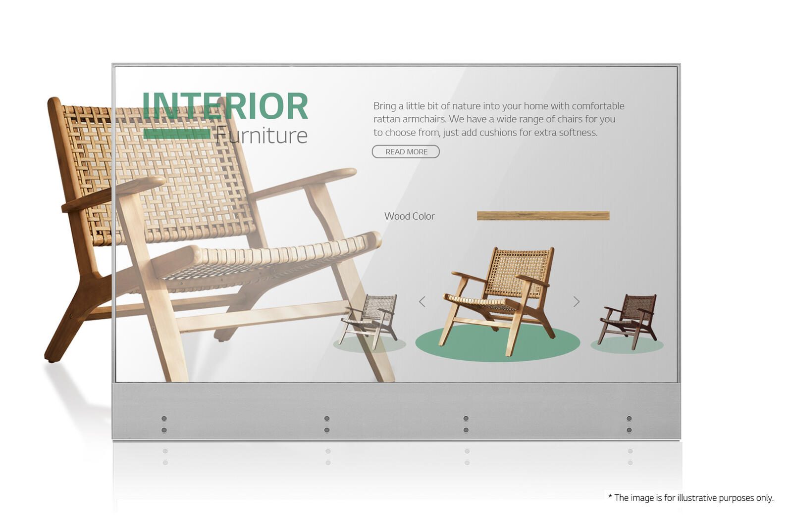 Dank der OLED-Technologie von LG hat das Transparent OLED Signage eine schlankere Struktur ohne Hintergrundbeleuchtung und Flüssigkristallschicht und erreicht eine hohe Transparenz von 38%*, die deutlich höher ist als bei herkömmlichen transparenten LCD-Displays (10%**). Während die Objekte hinter dem Bildschirm deutlich zu sehen sind, werden die relevanten Informationen direkt vor ihnen eingeblendet.