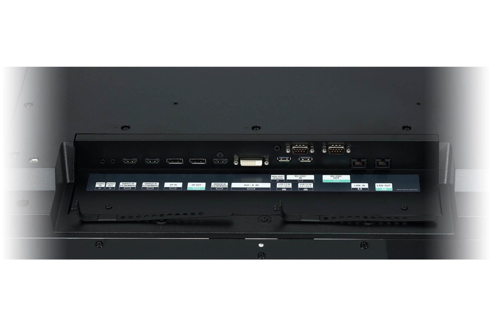- Schnittstellen: HDMI (3), DP, USB (2), Audio, DVI-D, RS232C, RJ45, IR