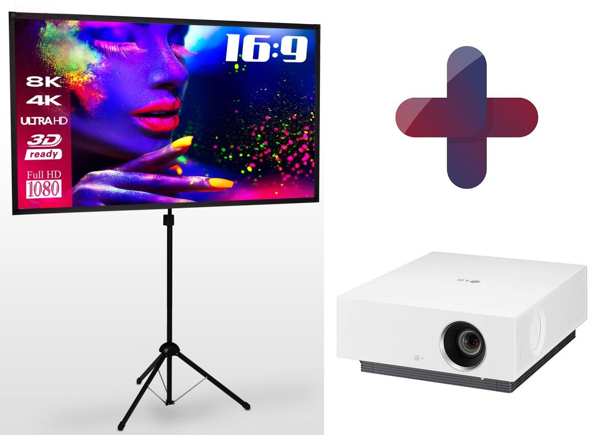LG HU810PW Forte CineBeam Laser Heimkino Beamer 2700 ANSI Lumen + eSmart Expert X-Type Ultralightweight Stativ Leinwand MISATI 228 cm 90 Zoll
