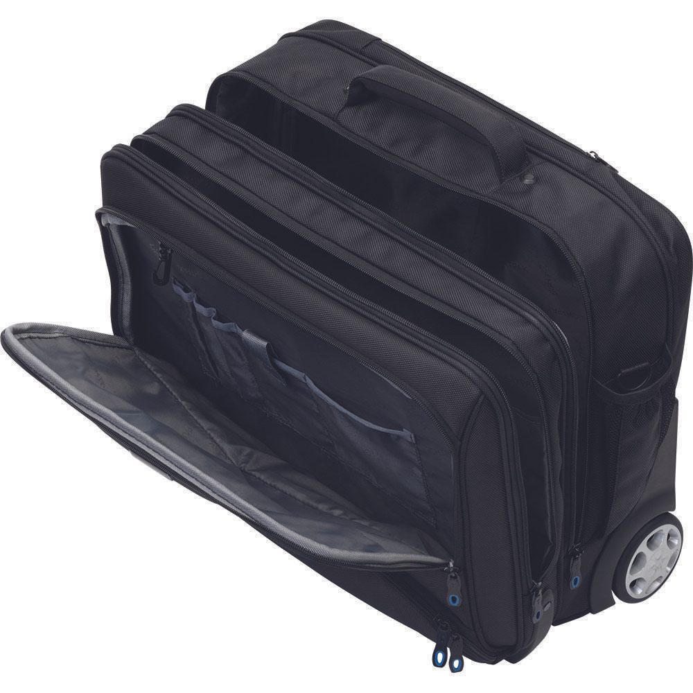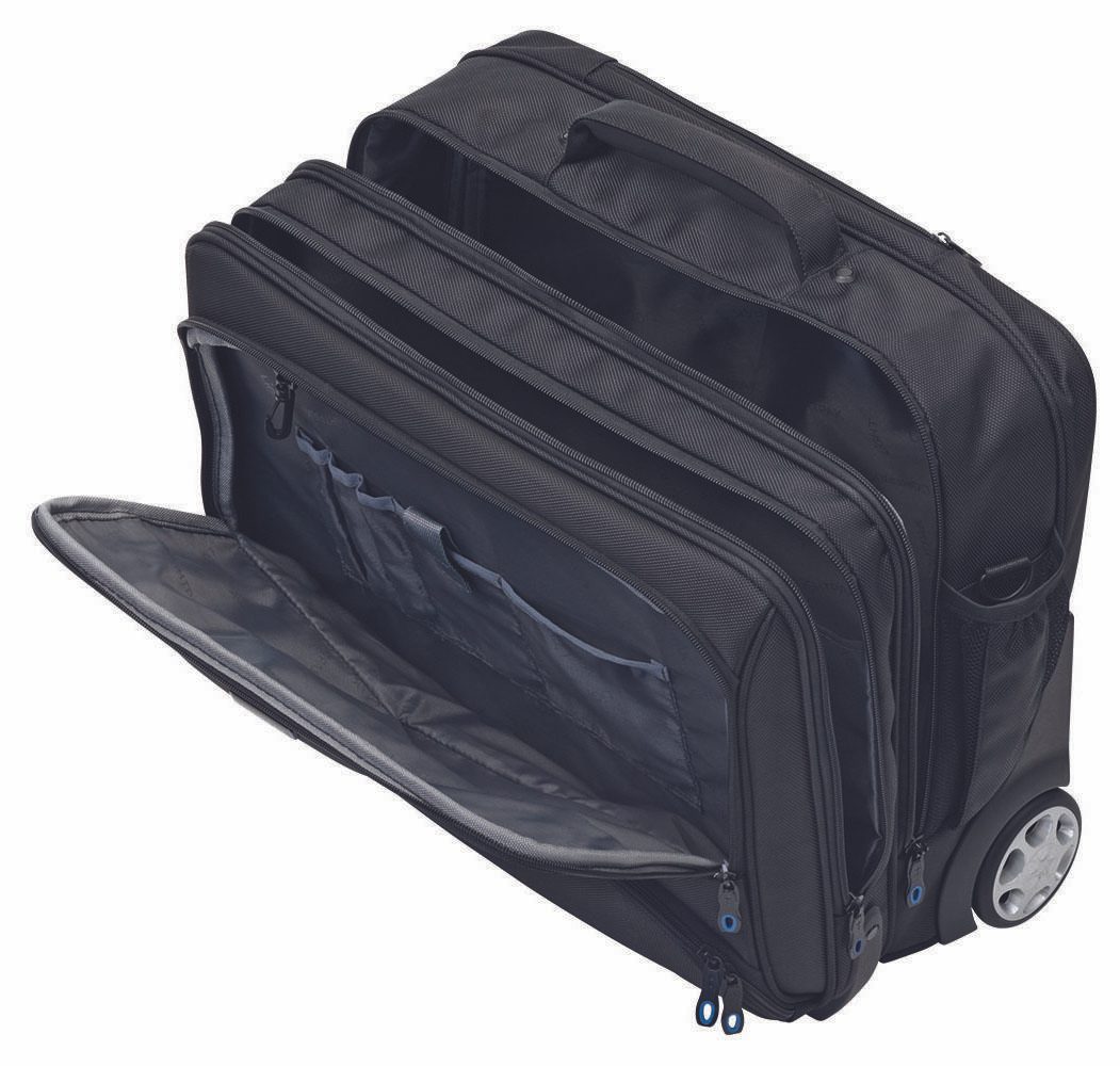- Ausführung: Reißverschlussvorfach, Außentasche für Regenschirm oder Getränke, gummierte Leichtlaufrollen