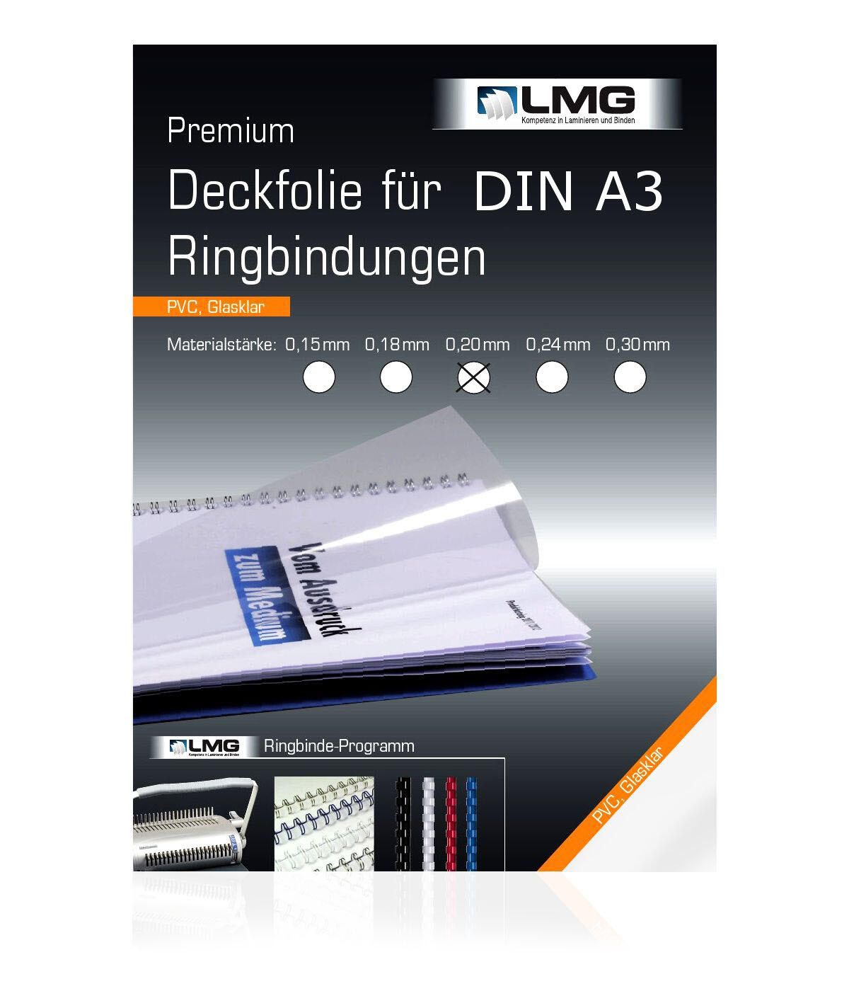 LMG Deckfolien für Bindemappen A3 0.2 mm transparent