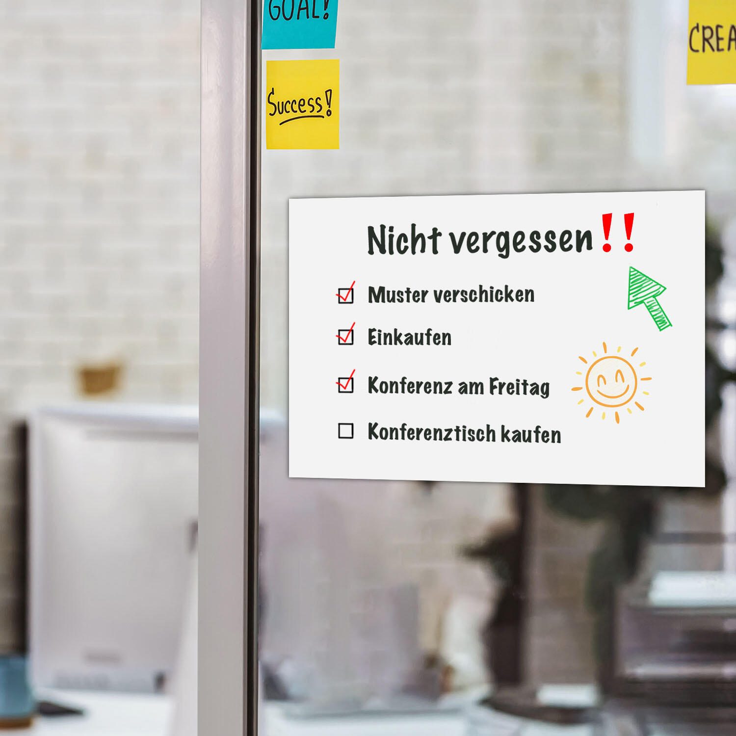 Die LMG selbstklebende Whiteboardfolie ist die perfekte Lösung für kreative Köpfe und Organisationsliebhaber. Mit den Maßen von 60,0 x 45,0 cm bietet sie ausreichend Platz, um deine Gedanken, Ideen oder To-Do-Listen festzuhalten. Die Folie ist in einem eleganten Weiß gehalten und passt sich harmonisch in jede Umgebung ein. Ein herausragendes Merkmal dieser Whiteboardfolie ist ihre nicht permanente Selbstklebefunktion. Das bedeutet, dass sie fest haftet, ohne dabei dauerhafte Rückstände zu hinterlassen. Du kannst die Folie problemlos abnehmen und an anderer Stelle wieder anbringen, was sie besonders flexibel und benutzerfreundlich macht. Egal, ob du sie in deinem Büro, im Homeoffice oder im Kinderzimmer verwenden möchtest, die Möglichkeiten sind nahezu unbegrenzt. Die LMG Whiteboardfolie eignet sich für viele Oberflächen und ist somit vielseitig einsetzbar. Sie ist nicht nur ideal für das Schreiben mit Whiteboardmarkern, sondern auch für die kreative Gestaltung von Präsentationen oder Brainstorming-Sessions. Die blanko Oberfläche ermöglicht es dir, deiner Fantasie freien Lauf zu lassen und deine Ideen visuell festzuhalten. Die Verwendung von hochwertiger Folie garantiert eine lange Lebensdauer und eine einfache Handhabung. Du kannst die Folie jederzeit abwischen und wiederverwenden, was sie zu einer nachhaltigen Alternative zu herkömmlichen Whiteboards macht. Die LMG selbstklebende Whiteboardfolie ist die ideale Wahl für alle, die eine praktische und stilvolle Lösung für ihre Beschriftungsbedürfnisse suchen.Technische Daten