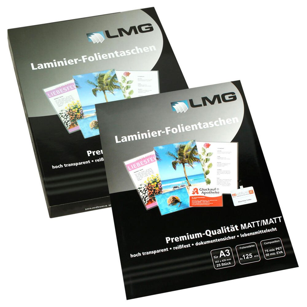 Die LMG Laminierfolien matt 125 mikron A4 bieten eine hervorragende Möglichkeit, Dokumente und Bilder professionell zu schützen und zu präsentieren. Mit einer Folienstärke von 125 Mikron pro Seite garantieren diese Folien eine robuste und langlebige Versiegelung, die sowohl für den privaten als auch für den geschäftlichen Gebrauch ideal ist. Die matte Oberfläche sorgt dafür, dass die Laminierung nicht nur optisch ansprechend ist, sondern auch Reflexionen minimiert, was besonders vorteilhaft ist, wenn du Dokumente in Präsentationen oder Schulungen zeigst. Diese Laminierfolien sind speziell für das Format A4 konzipiert und passen somit perfekt für die meisten Standarddokumente. Jedes Pack enthält 100 Folien, was dir ausreichend Material für umfangreiche Projekte bietet. Die abgerundeten Ecken der Folien verhindern ein Abblättern und sorgen für eine ansprechende Optik, während die Verwendung von hochwertigem Polyester und Polyethylen (PET mit mindestens 60% Anteil) für eine umweltfreundliche und sichere Laminierung steht. Die LMG Laminierfolien sind nicht selbstklebend und verfügen über eine praktische Lochung, die dir die Handhabung erleichtert. Egal, ob du wichtige Unterlagen, Fotos oder kreative Projekte laminieren möchtest, diese Folien bieten dir den optimalen Schutz vor Feuchtigkeit, Schmutz und Abnutzung. Die Verwendung dieser hochwertigen Laminierfolien ermöglicht es dir, deine Dokumente in einem professionellen Licht zu präsentieren und sie gleichzeitig vor äußeren Einflüssen zu bewahren. Vertraue auf die Qualität und Zuverlässigkeit von LMG, um deine wertvollen Erinnerungen und wichtigen Informationen zu schützen.Technische Daten