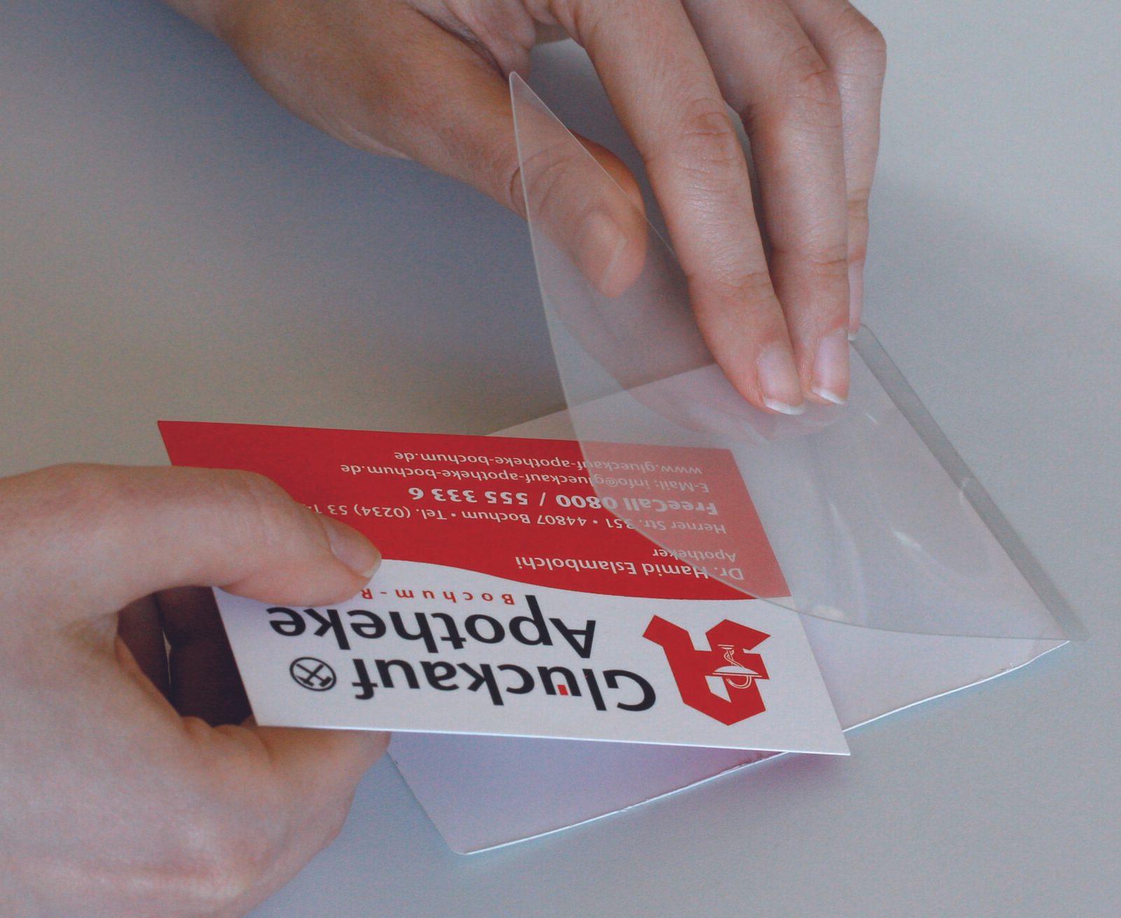 - Kaltlaminierfolien mit Spezialkleber beschichtet