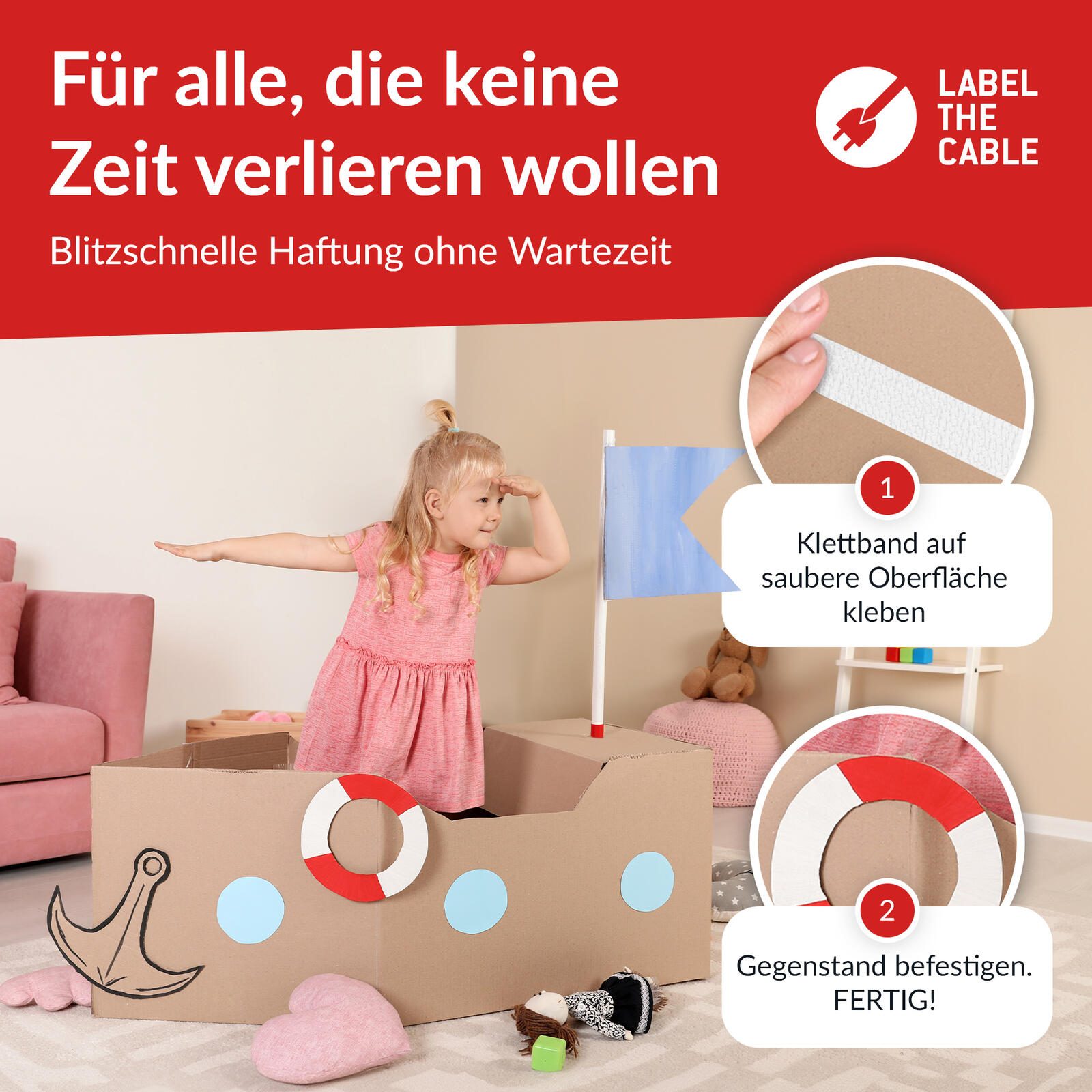 Bringe Ordnung und Halt ins Leben mit dem LABEL THE CABLE EASY TAPE - die intelligente Lösung für alle Befestigungsaufgaben ohne Bohren.