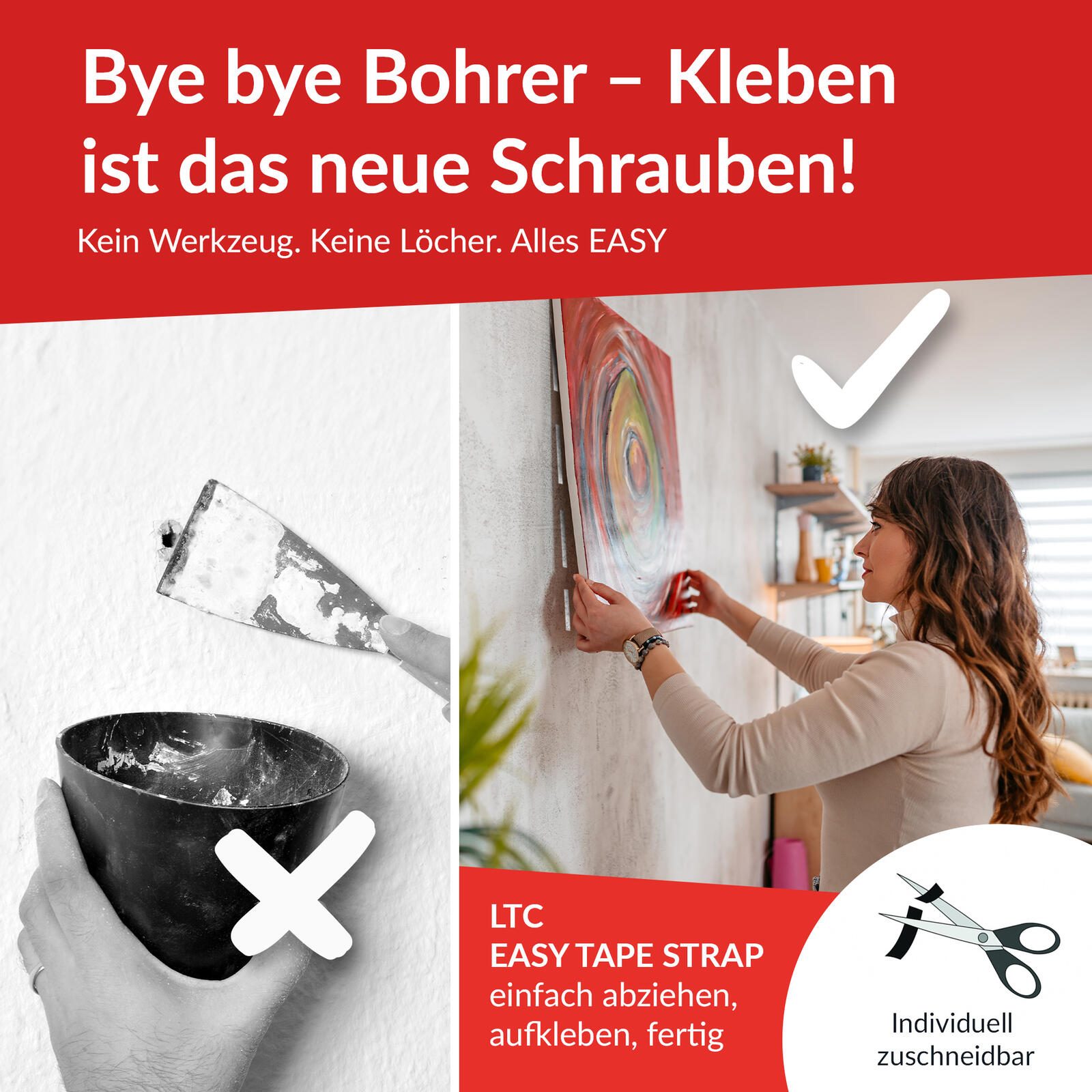 - Aufhängen von Bildern und Wanddekoration ohne Bohren
