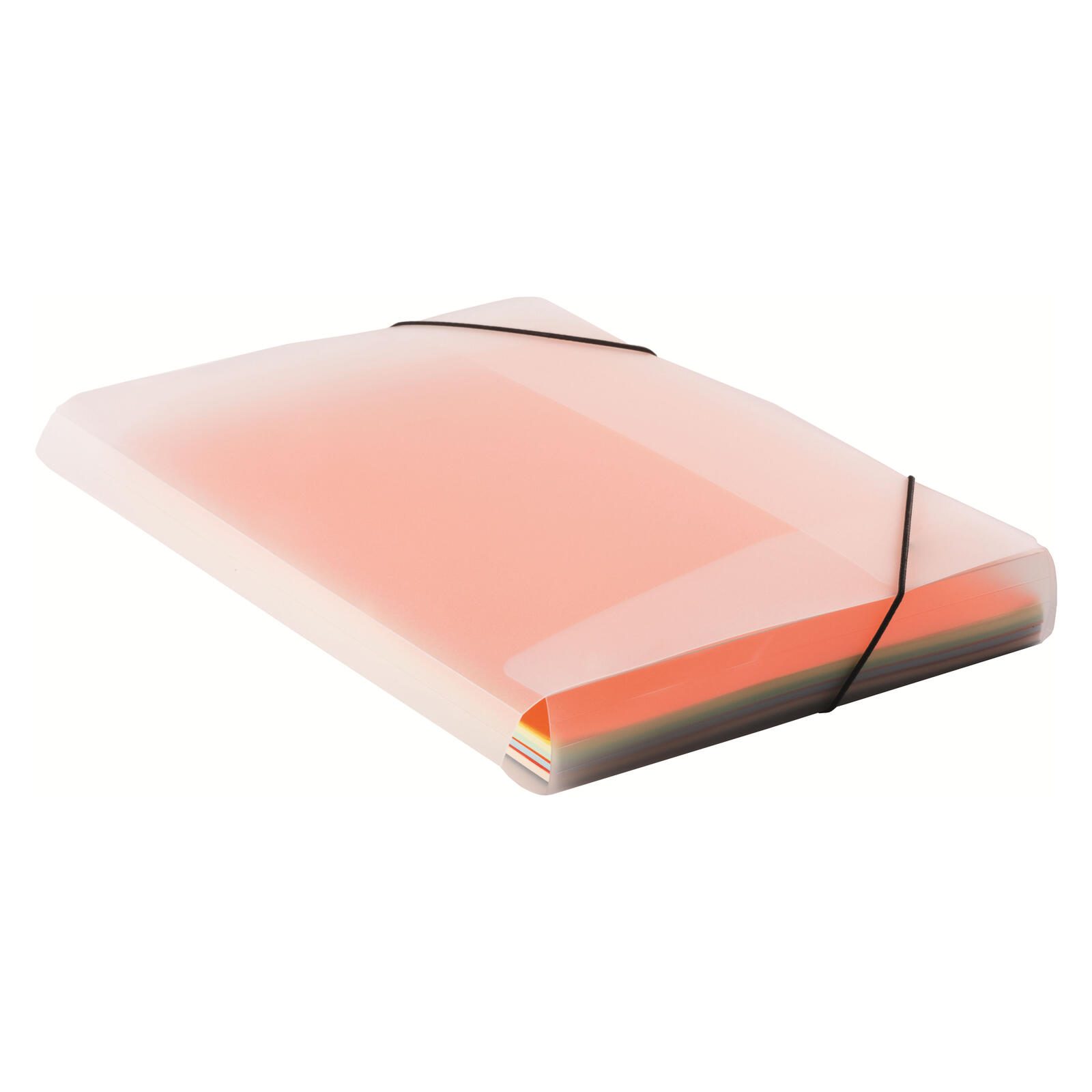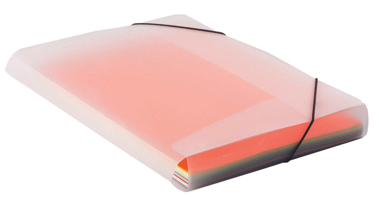 Mit einem Fassungsvermögen von 250 Blatt bekommst du ausreichend Platz, um deine Dokumente sicher zu verstauen. Dank des Gummizugs bleibt der Inhalt fest an Ort und Stelle, während die transparente Farbe einen schnellen Überblick über den Inhalt ermöglicht.