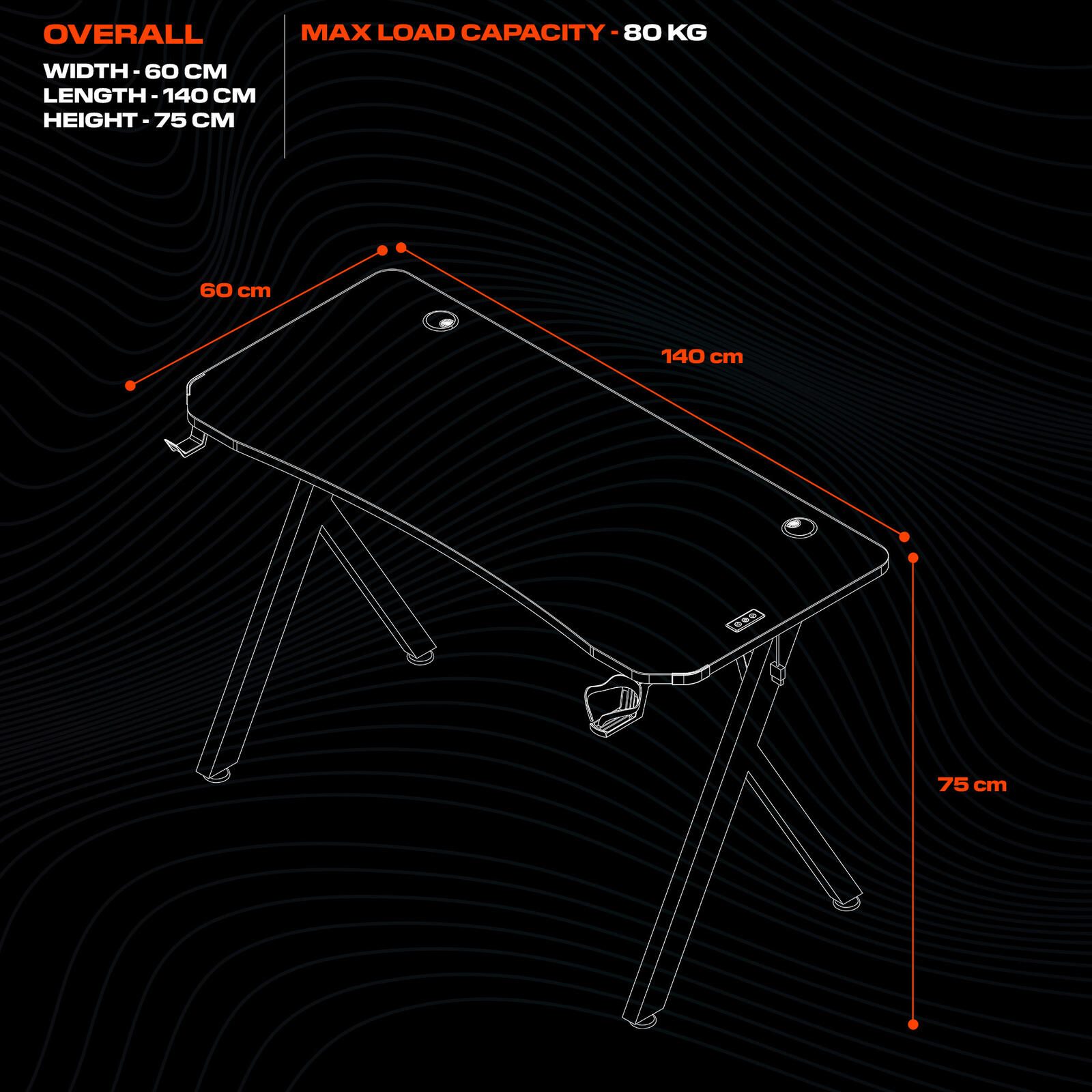 - Mit einer Schreibtischbreite von 140 cm ist der Lumio XL RGB ideal geeignet für umfangreiche Gaming-Setups.