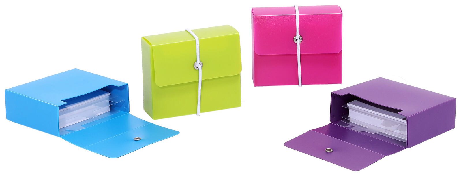 M&M Karteikasten DIN A8 grün, rot, blau, violett mit Deckel