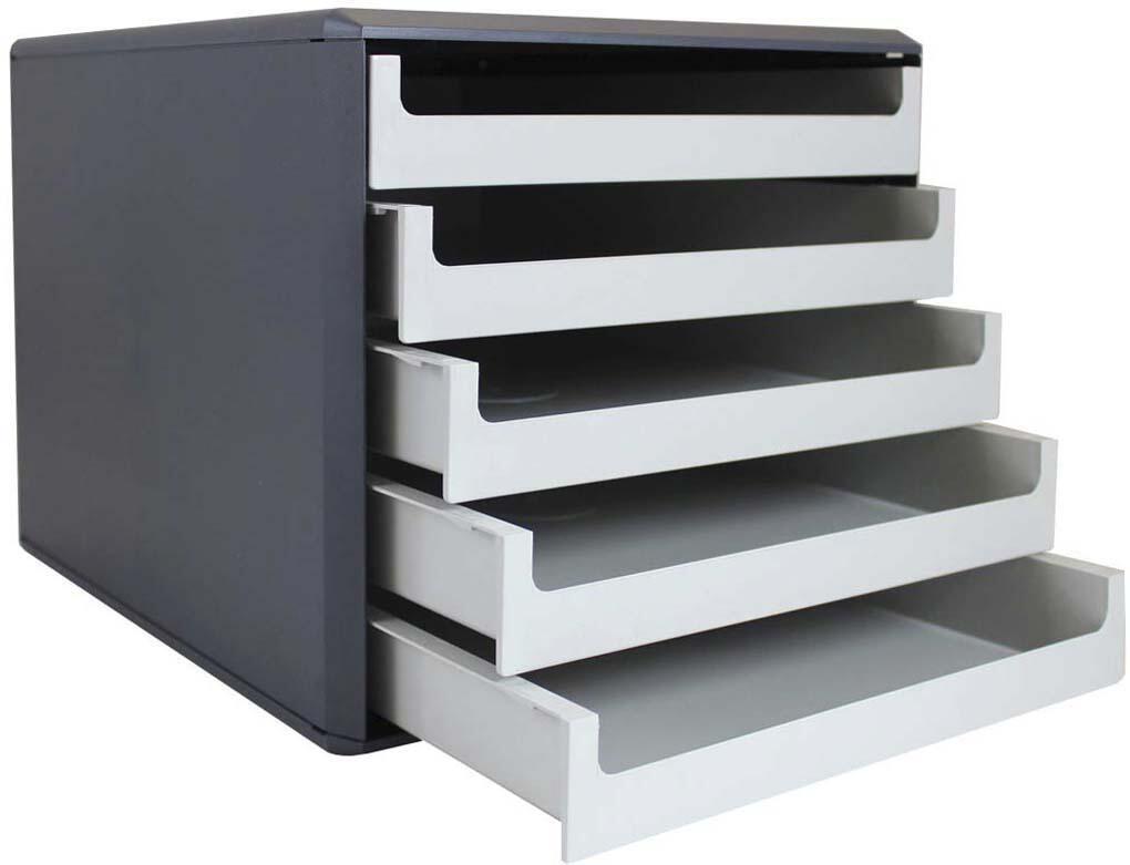 Dank der offenen Gestaltung der Schubladen hast du einen schnellen Zugriff auf deine Unterlagen, ohne lange suchen zu müssen. Die fünf geräumigen Fächer bieten ausreichend Stauraum für alled deine wichtigen Papiere und Unterlagen, sodass du stets organisiert bleibst und effizient arbeiten kannst.