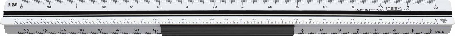 Der M+R 1631 Dreikantmaßstab ist ein praktisches Werkzeug für alle, die präzise Messungen und Zeichnungen anfertigen möchten. Das Dreikantlineal verfügt über einen rutschfesten Gummistreifen auf der Rückseite, der ein sicheres Arbeiten ermöglicht. Der Maßstab ist in den Verhältnissen 1:20, 1:25, 1:50, 1:75, 1:100 und 1:125 kalibriert, was eine Vielzahl von Anwendungen abdeckt.