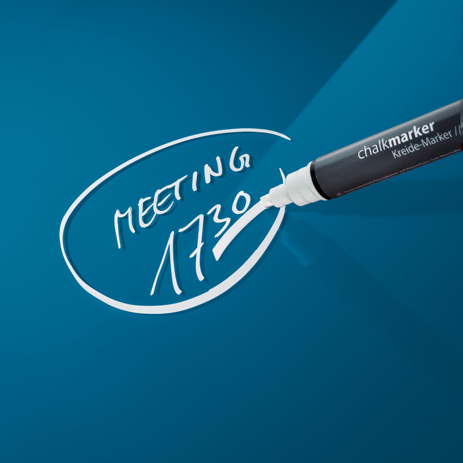 Dank der verdeckten Wandmontage kannst du das Magnetboard sowohl im Hochformat als auch im Querformat anbringen, je nach deinen Vorlieben und dem verfügbaren Platz. Die petrolblaue Farbe verleiht dem Raum eine moderne Note und setzt einen stilvollen Akzent.