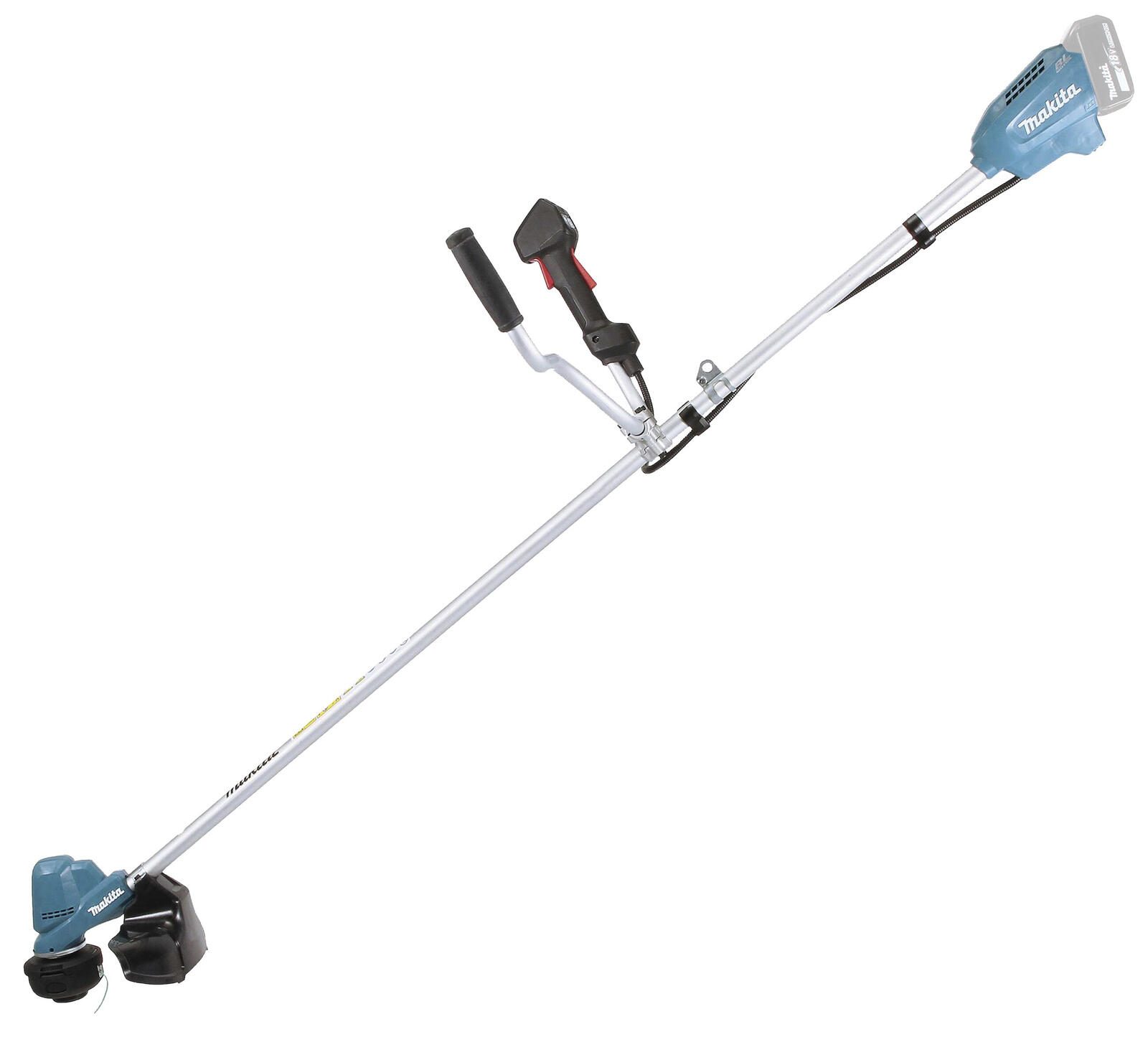 Zum Lieferumfang gehören ein 2-Fadenkopf, ein Sechskantstiftschlüssel, ein Zubehörbeutel sowie ein Zweihandgriff, der eine komfortable Führung des Geräts ermöglicht. Das Farbdesign des Rasentrimmers ist in blau und schwarz gehalten. Hergestellt wird das Produkt von der Makita Werkzeug GmbH mit Sitz in Ratingen, Deutschland.