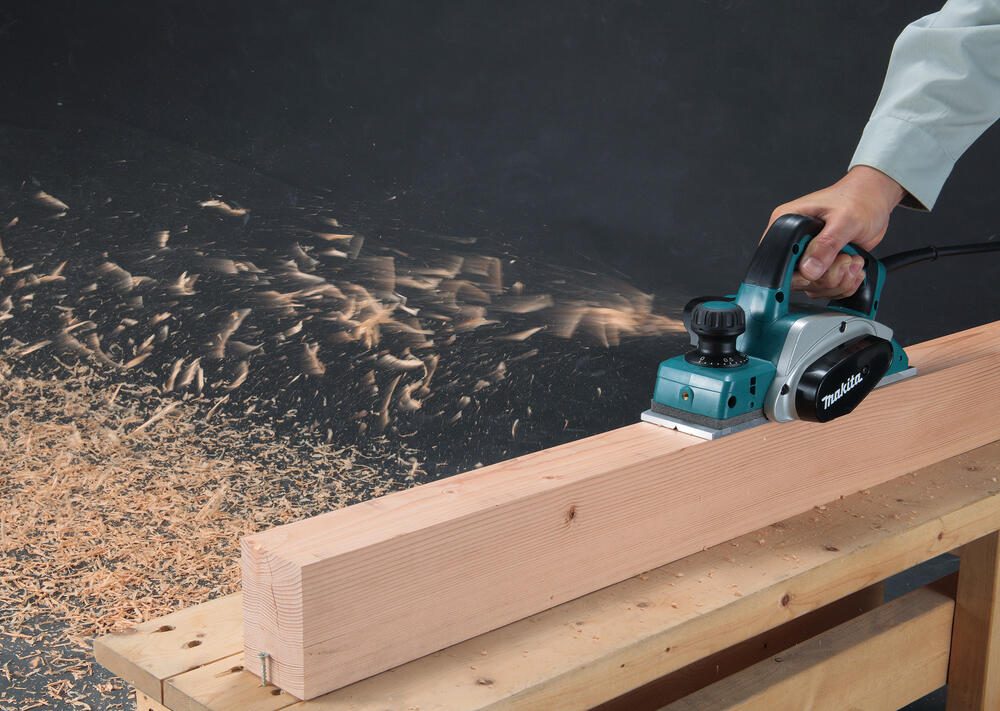 Ein kompakter 620 W Hobel mit einer Hobeltiefe von 4 mm und einer Hobelbreite von 82 mm. Geräuscharmer Betrieb und einfache Einstellung der Spanabnahme mittels Drehknopf.