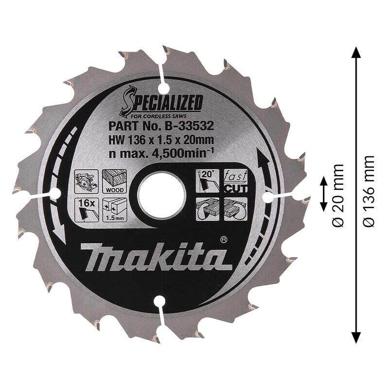 makita Kreissägeblatt B-33532 SPECIALIZED 136x20x16Z