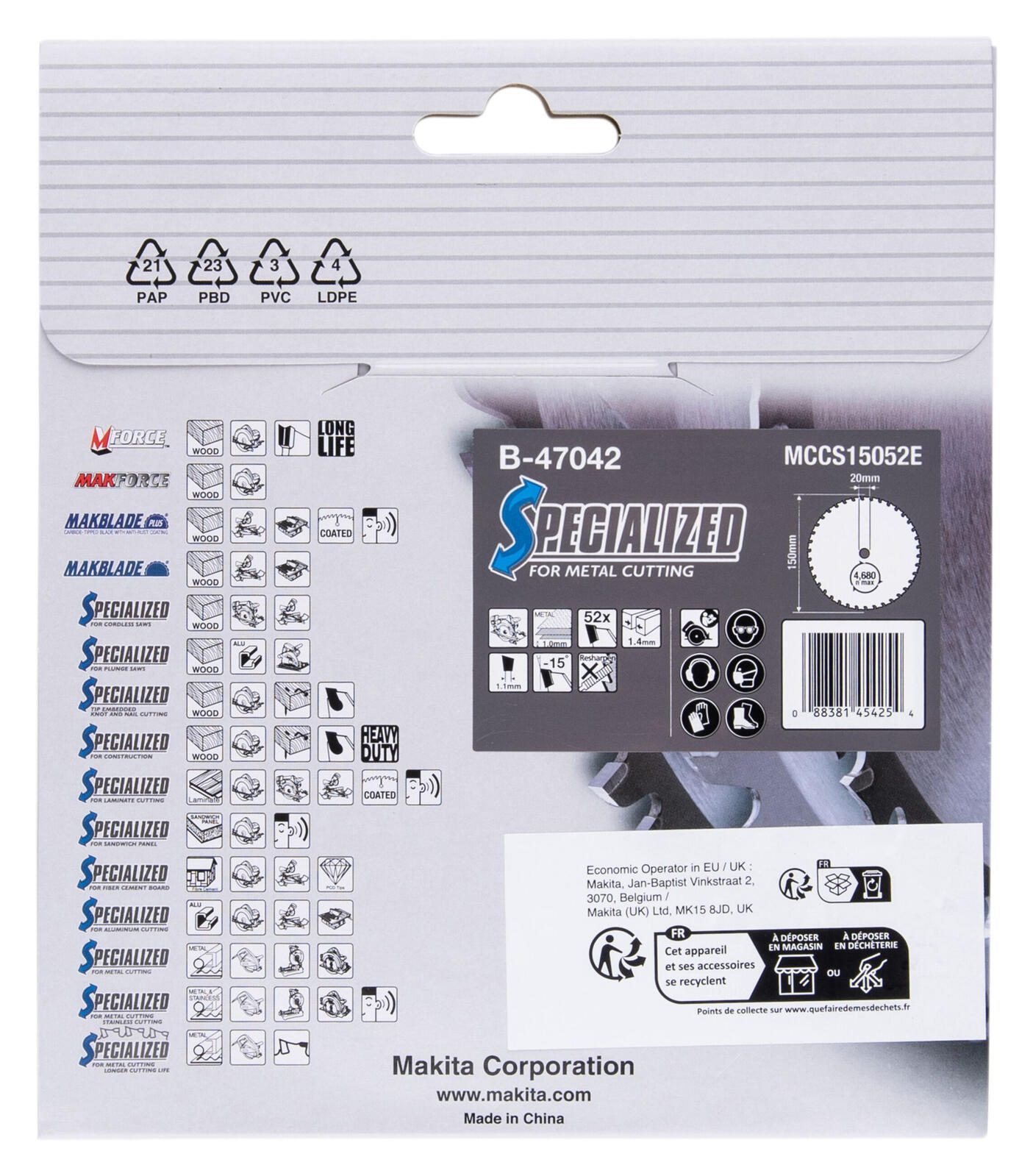 makita Kreissägeblatt B-47042 SPECIALIZED 150x20x52Z