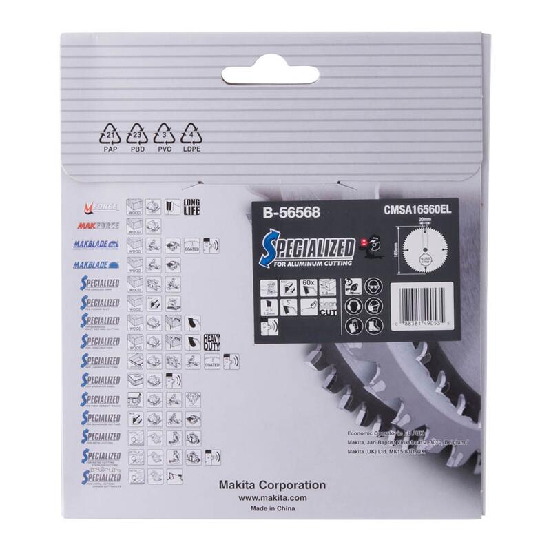 Das makita Kreissägeblatt B-56568 zeichnet sich durch seine präzise Verarbeitung und die speziell entwickelte Zahnform aus, die für optimale Schnittergebnisse sorgt. Mit einem Durchmesser von 165 mm und 60 Zähnen ist dieses Sägeblatt ideal auf die Bearbeitung von Aluminium abgestimmt. Die Bohrung von 20 mm gewährleistet eine einfache und sichere Montage auf kompatiblen Maschinen.