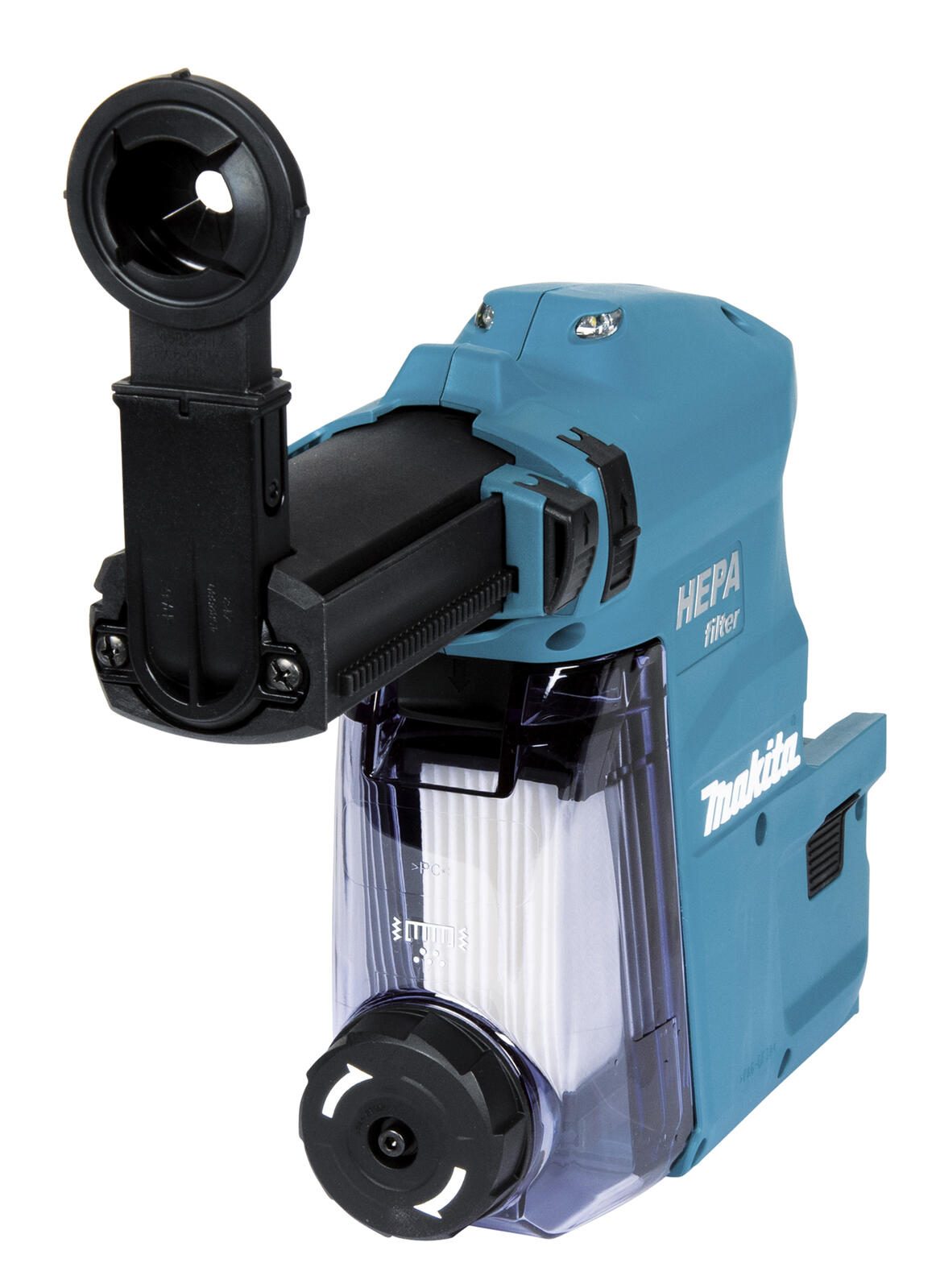 - Transparente Staubbox zur schnellen Kontrolle des Füllstandes, Tiefenbegrenzer für genaue Tiefeneinstellung, Doppelverriegelung verhindert das unbeabsichtigte Entfernen vom Bohrhammer.
