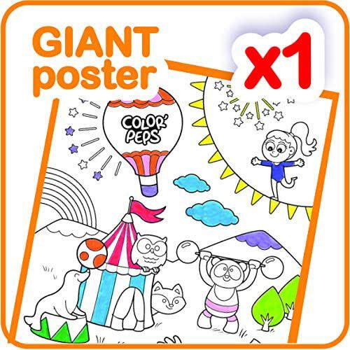 Die Farbauswahl des Mal-Sets umfasst Schwarz, Braun, Grün, Hellgrün, Gelb, Orange, Rot, Pink, Violett, Aubergine, Dunkelblau und Hellblau, sodass der Kreativität keine Grenzen gesetzt sind. Mit dem Mal-Set COLOR'PEPS MY FIRST können Kinder ihrer Fantasie freien Lauf lassen und ihre Werke im Handumdrehen kreieren.